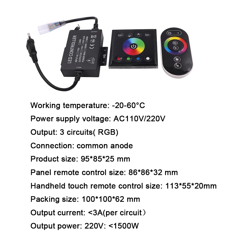 AC 110V 220V RGB RF Controller Full Touch LED диммер 1500W высокая мощность для светодиодных лент 2835 5050 5730 вилка ЕСАвстралииВеликобританииСША
