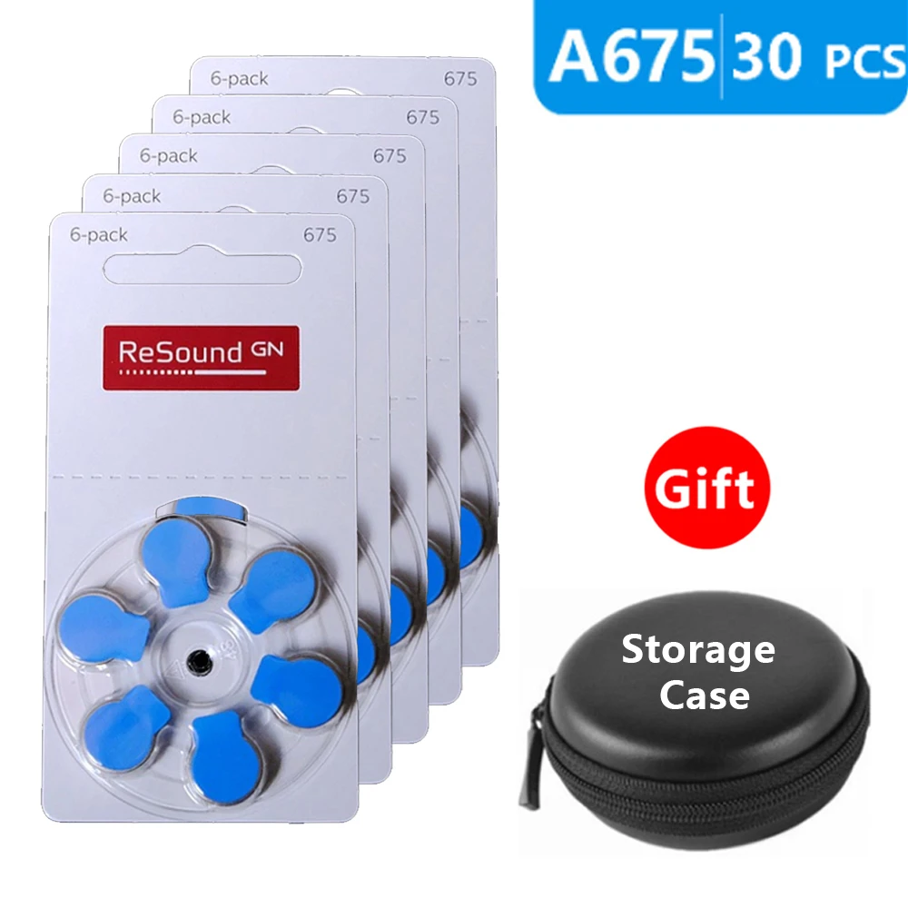 Аккумуляторы для слухового аппарата, размер 675 za, 30 шт. в упаковке, синий Tab PR44, 1,45 в, тип A675, усилитель цинкового аккумулятора Air с чехлом