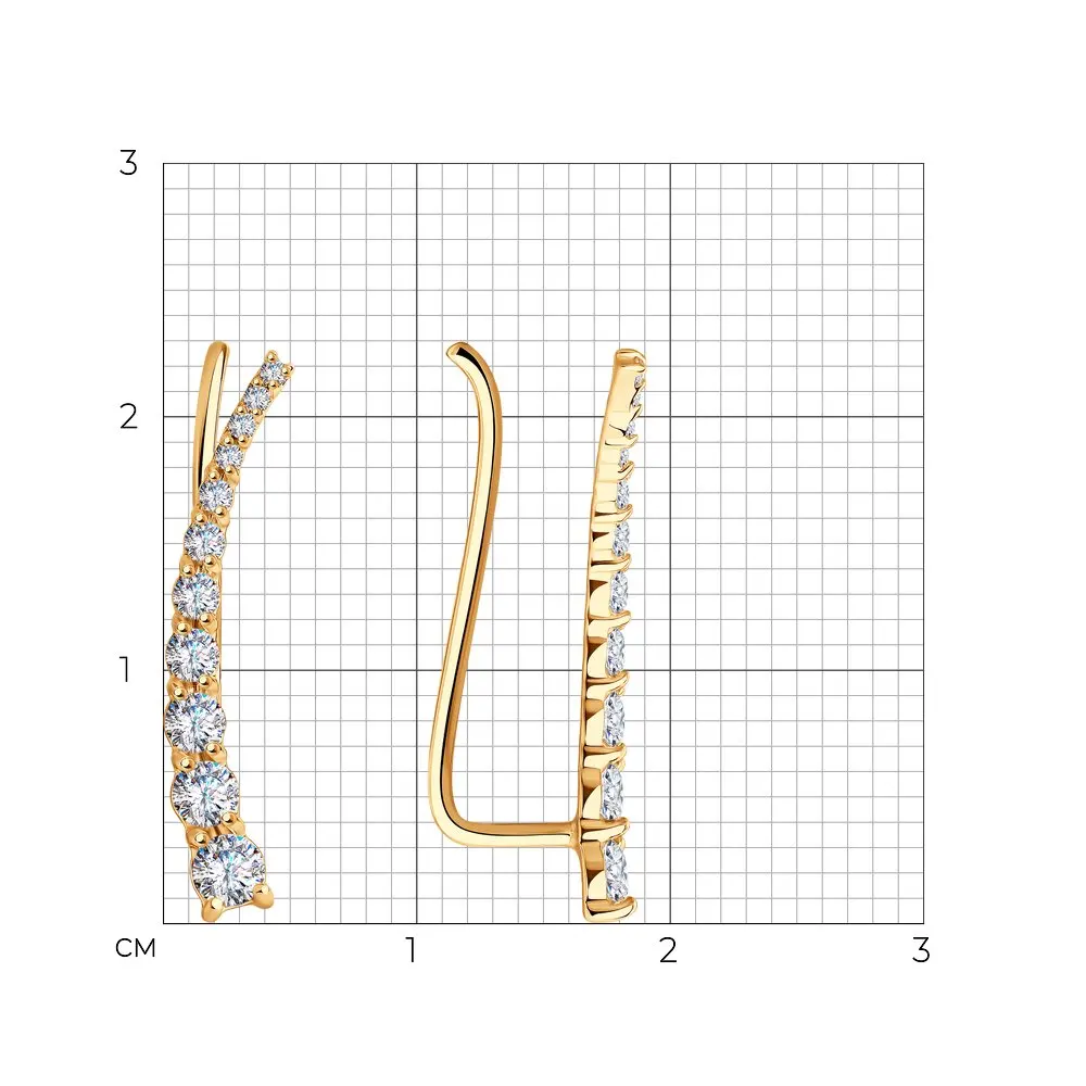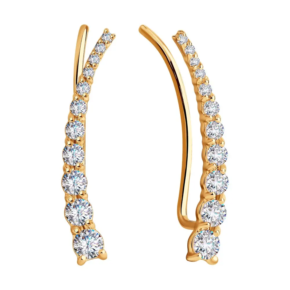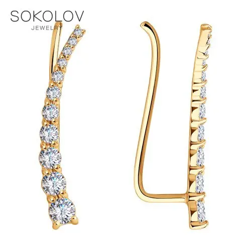 Серьги-зажимы с фианитами SOKOLOV, Золото, 585, Женские, Серьги 2022 тренд, Оригинальная продукция