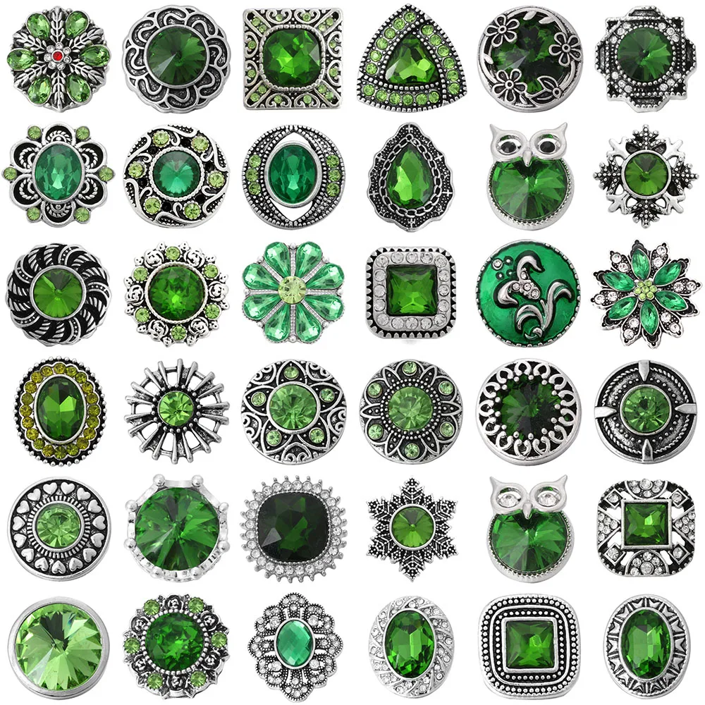 5 шт.лот, новые зеленые ювелирные украшения, металлические кнопки 18 мм, ювелирные изделия со стразами, кнопки 18 мм, кнопки для браслета, ювелирные изделия
