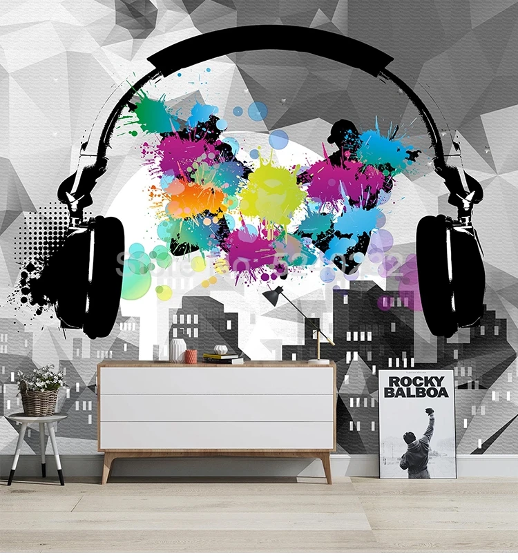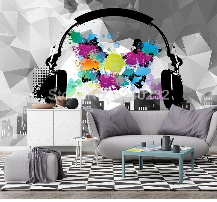 Настенные 3D-обои по индивидуальному заказу, гарнитура, музыкальный модный постер с граффити, настенная живопись, фотообои для гостиной