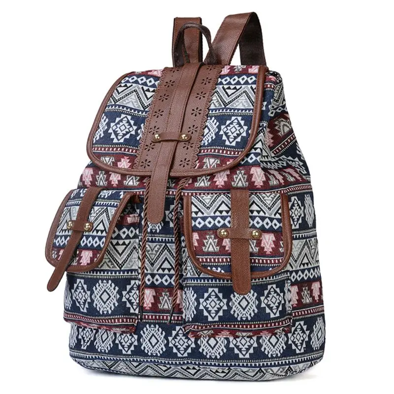 2021 Новый Винтажный холщовый этнический рюкзак с богемным принтом для женщин, школьный дорожный рюкзак высокого качества