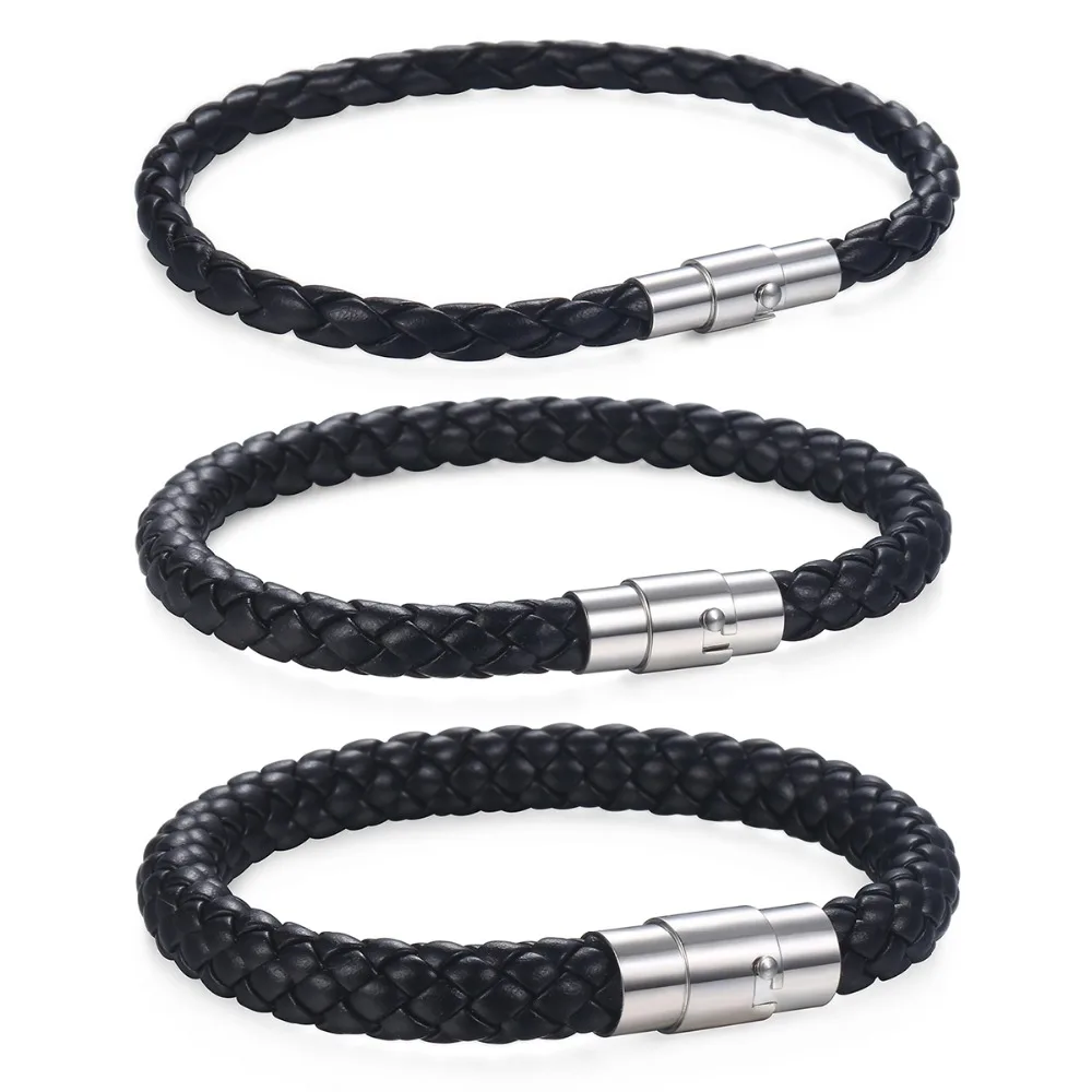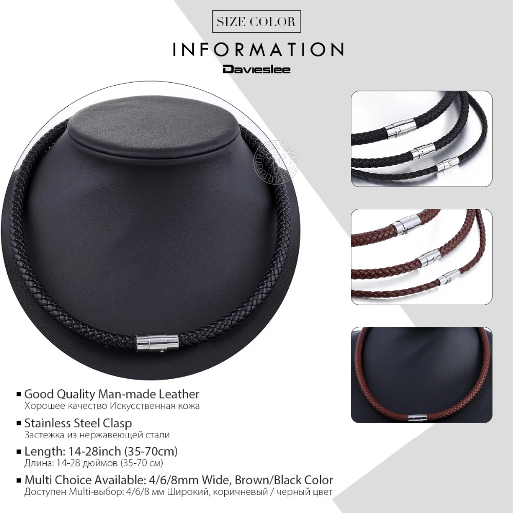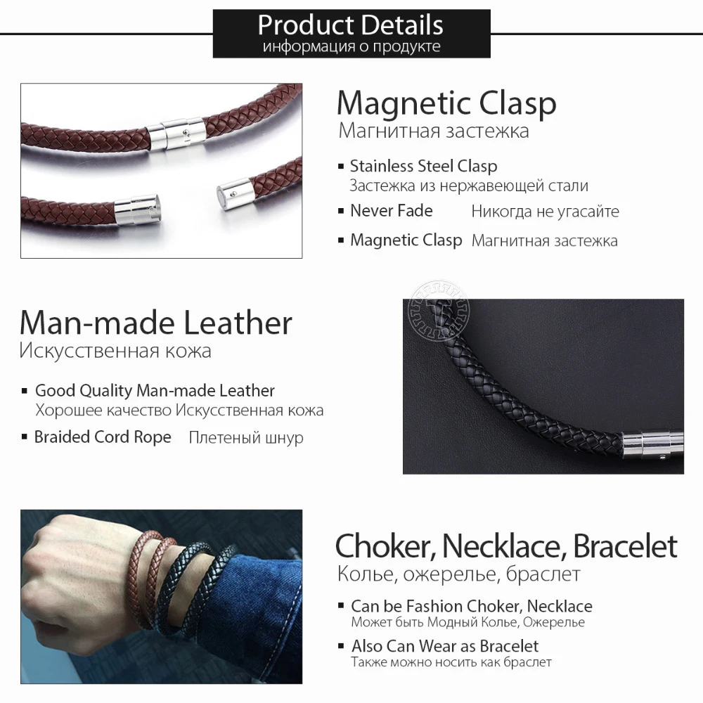 Ожерелье-чокер из кожи ручной работы, плетеный шнур звено веревки, серебристая цепь с застежкой из нержавеющей стали, 468 мм, черный и коричневый цвета
