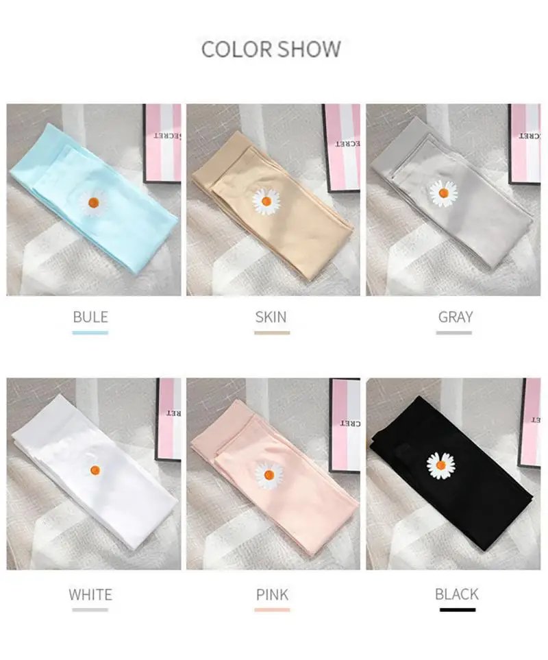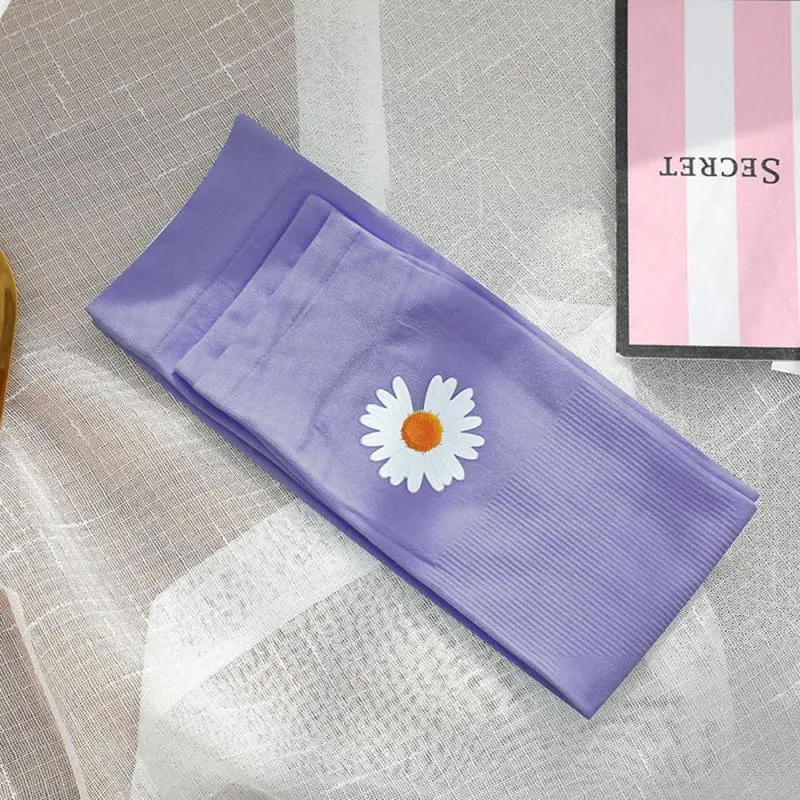 6 цветов на выбор: фиолетовый, черный, белый, небесно-голубой, цвет кожи, серый, розовый, принт ромашки на манжетах очень модный и милый.