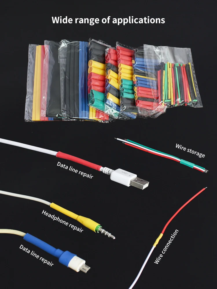 Термостойкие трубки, термоусадочные трубки в ассортименте, изоляционные трубки, полиолефиновые трубки для кабеля, термоусадочная упаковка, 580750 шт.