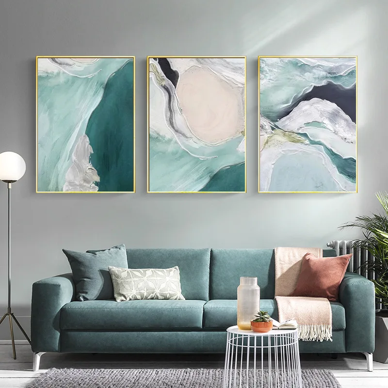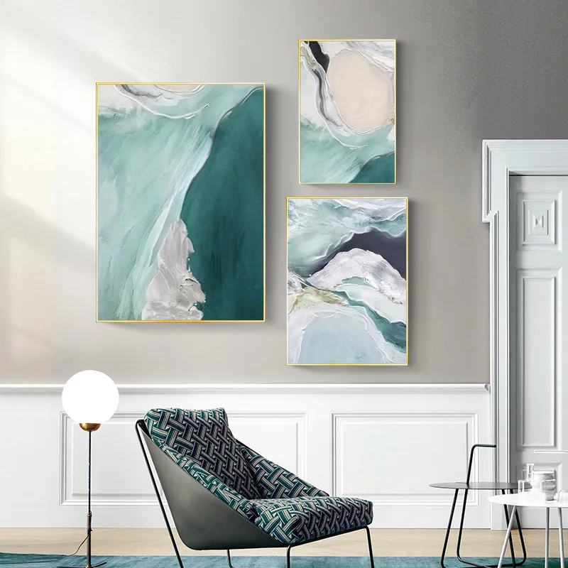 Скандинавская Современная темно-зеленая Акварельная абстрактная картина маслом для гостиной светлая Роскошная декоративная живопись картина холст художественный плакат