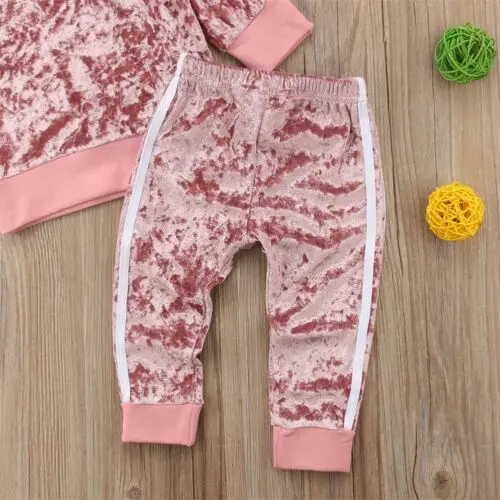 Новый осенний детский бархатный топ с длинными рукавами + длинные штаны, комплект одежды