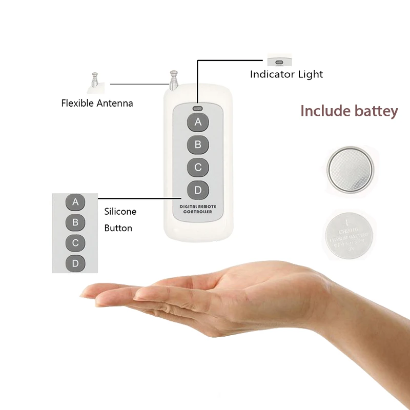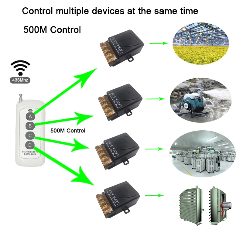 Область применения продуктаПродукты могут быть использованы в домах, фермах, фабриках, офисах, лабораториях, супермаркетах и так далееВодяной насос с дистанционным управлением \ вентилятор \ лампа \ светодиодный светильник \ лампа \ вентиляционное устройство \ передача сигнала Особенности: 1,500 м управление дальним расстоянием 2. Управление несколькими устройствами одновременно3.Используется в нескольких местах
