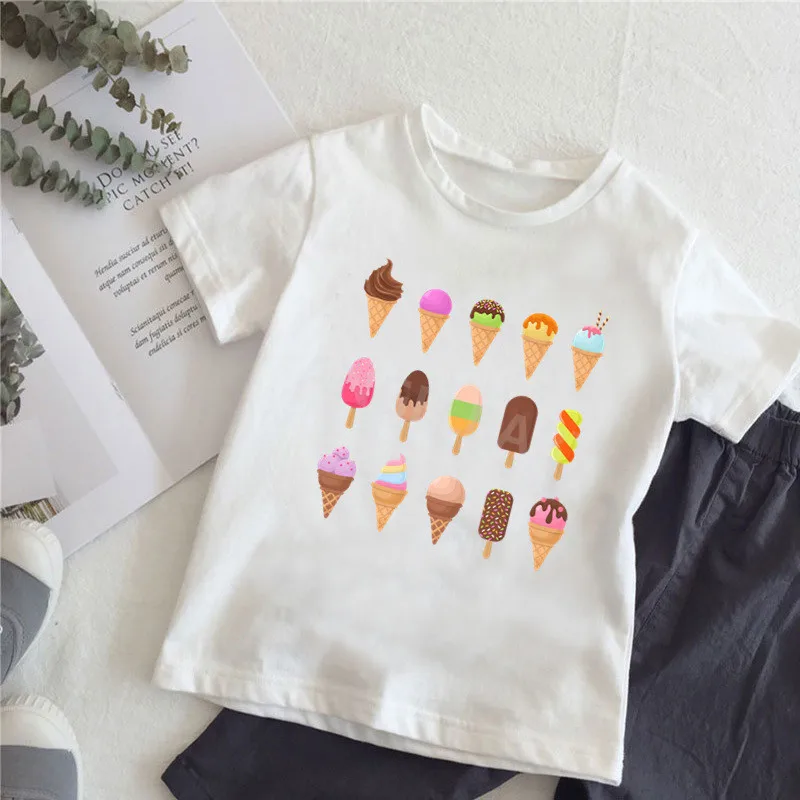 Детские футболки с рисунком волшебных кошек, собак, панд, мороженог...