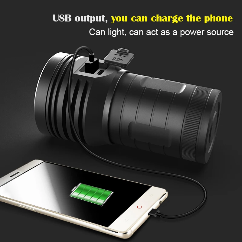 Переключатель:Нажмите переключательСпектр:300-1000 метровАккумулятор:Встроенная литиевая батарея 4 * 18650Стойло:Сильная / слабая вспышка [длительное нажатие в течение 2 секунд для выключения]Водонепроницаемый:IPX5 [ежедневная водонепроницаемость]Материал:Алюминиевый сплавУгол луча:60 °Способ зарядки:Зарядка через микропортВвод и вывод:5V1AРазмер:118 мм * 61 мм * 50 мм