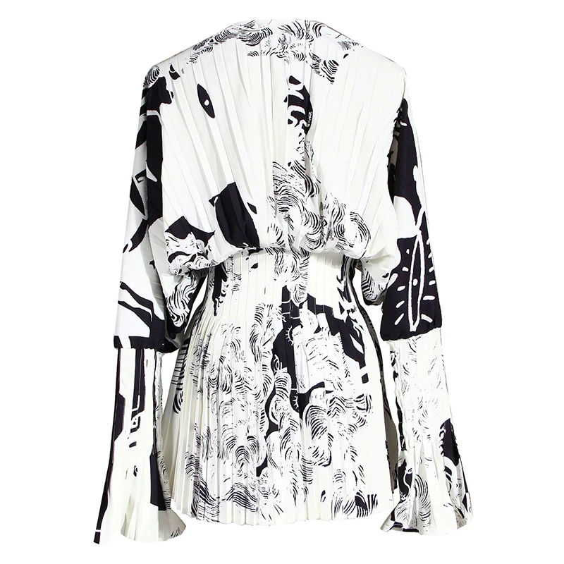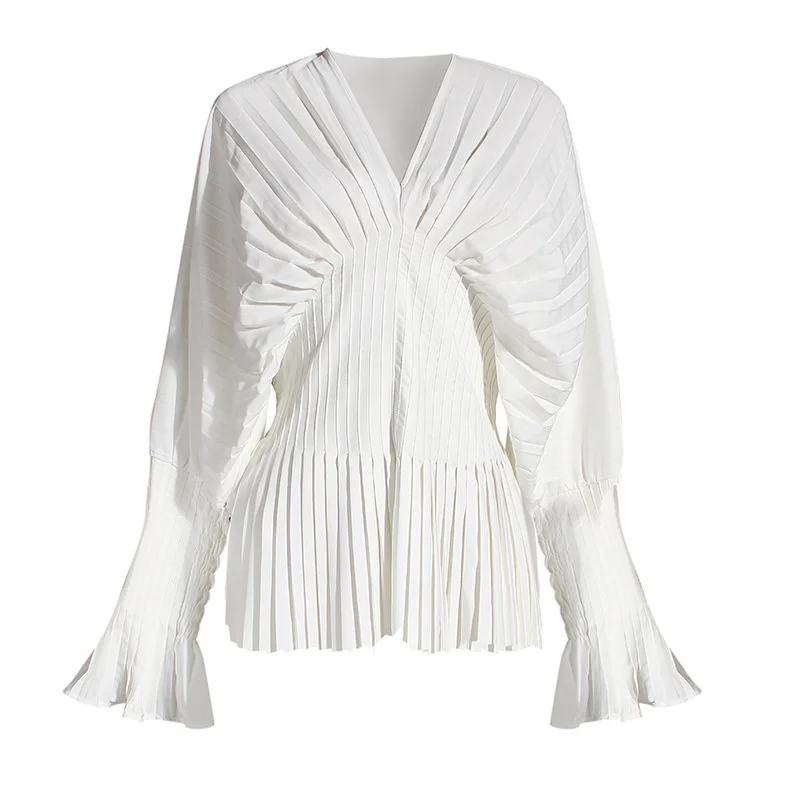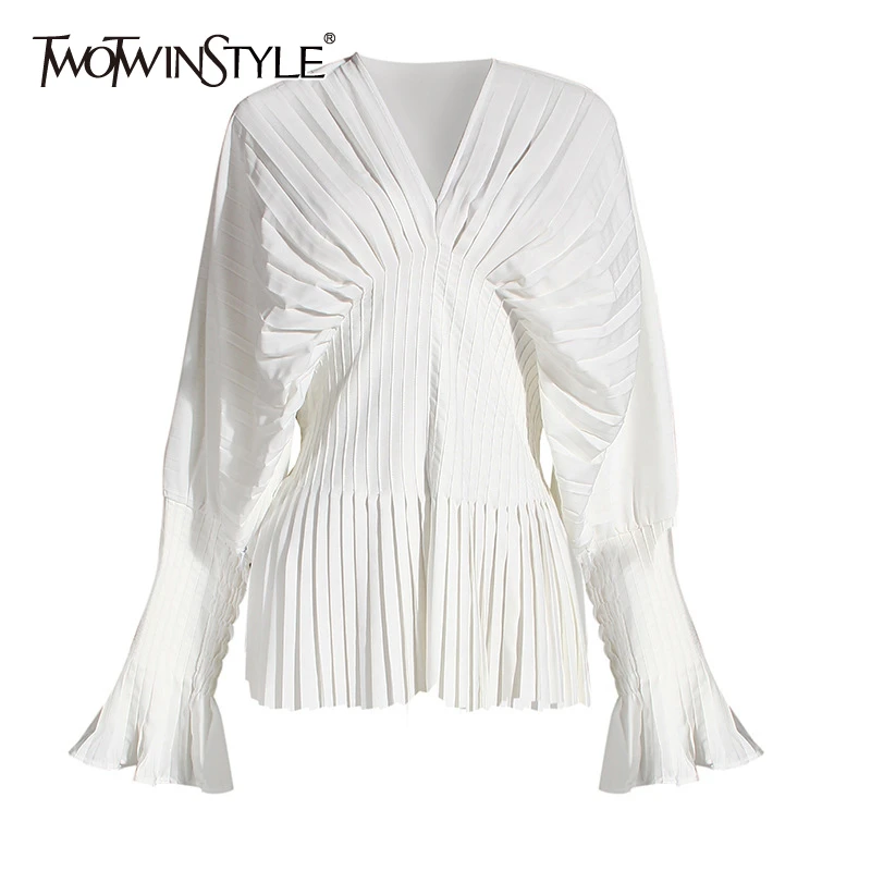 TWOTWINSTYLE, повседневные блузки для женщин, v-образный вырез, расклешенный длинный рукав, высокая талия, плиссированные женские рубашки, одежда, мода 2022, весна, Новинка