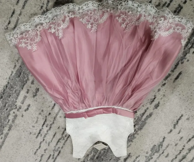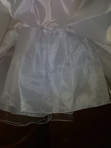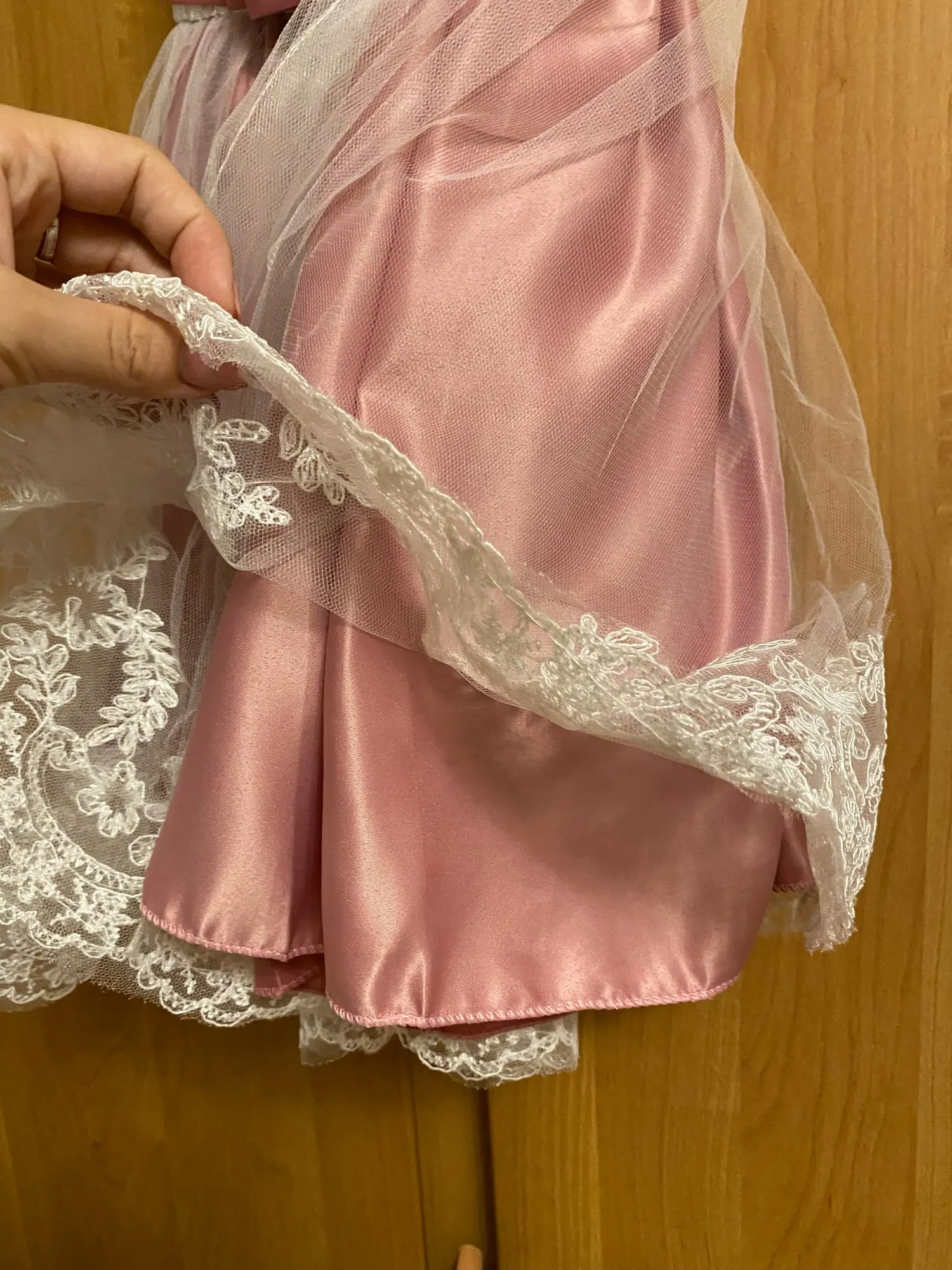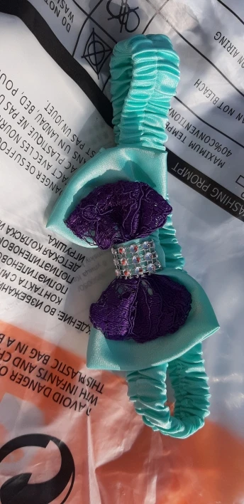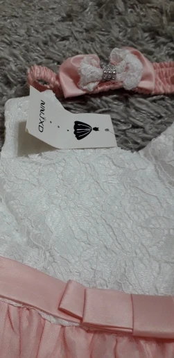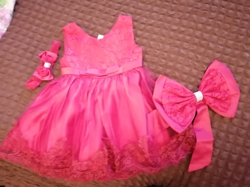 Платье отличное, на фото с подъбюником и не глаженое. На резинке с бантиком на голову торчали нитки, но это не критично.