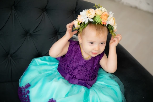 Размерной сетке соответствует, платье красивое. Немного криво приклеен бант на повязке, но это мелочи.