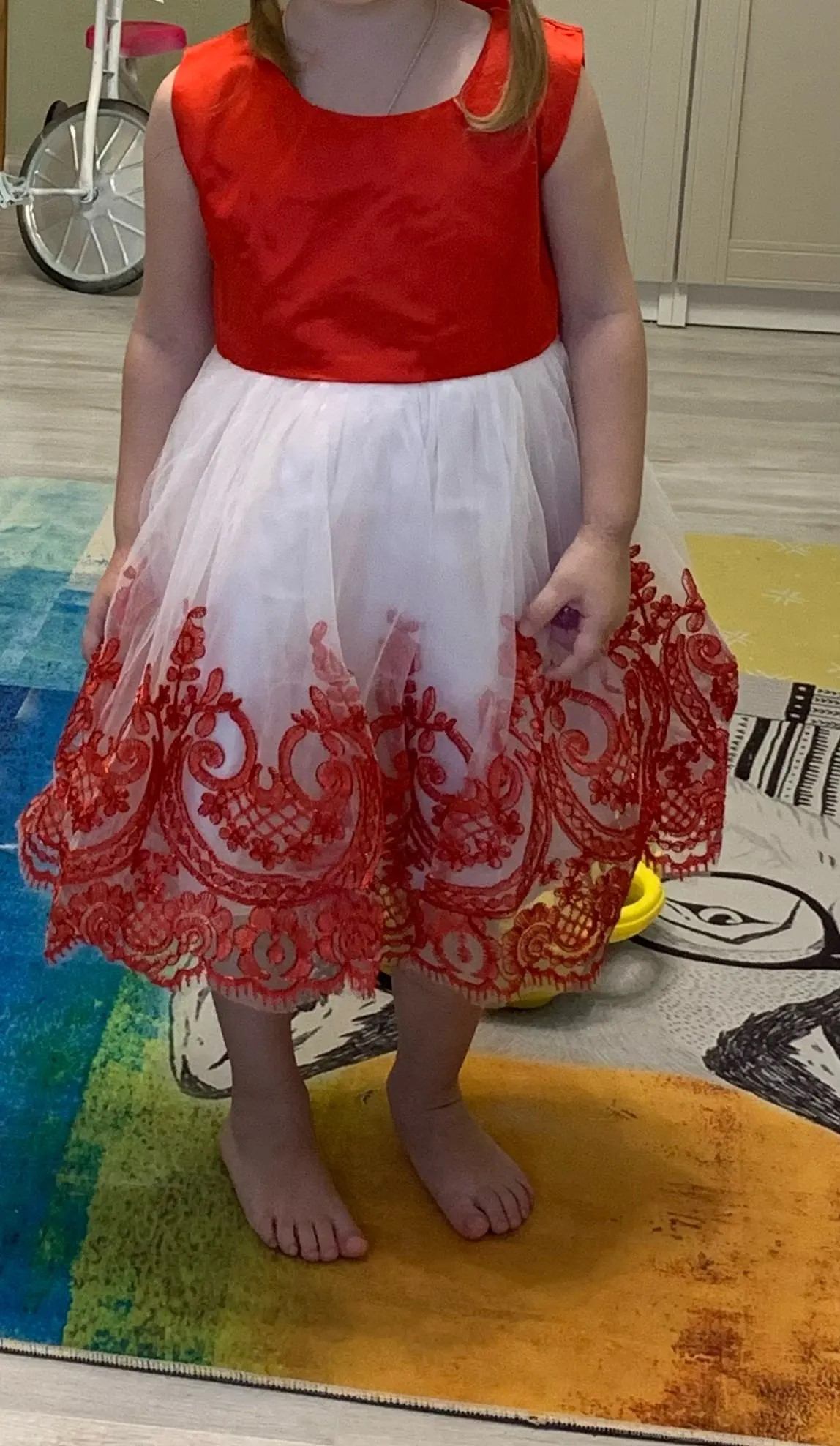 Платье отличное! Качественное. У дочери рост 111 заказала на 122, по длине отлично, в ширину большевато, надо завязки сзади пришить и будет отлично! Юбка не очень пышная, попробую подъюбник одеть, хотя и так отлично смотрится!