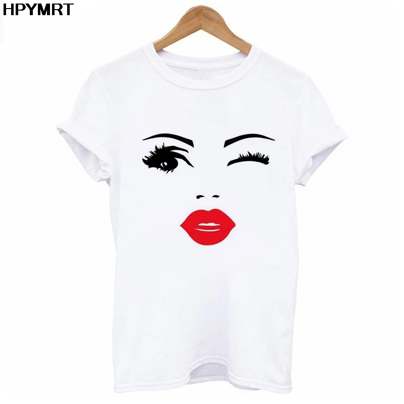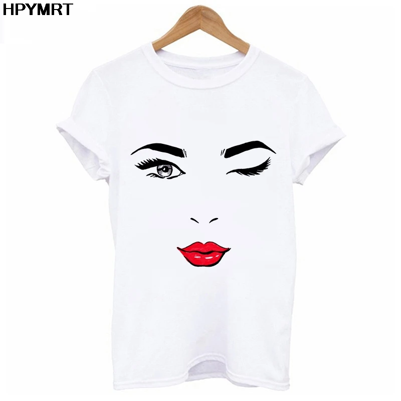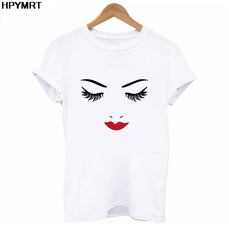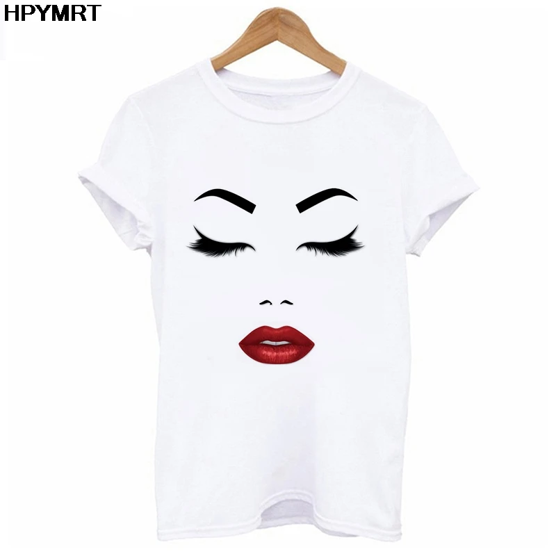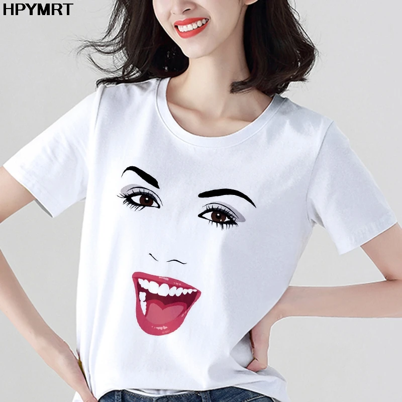 Женская футболка с принтом губ и губной помады, Женская Футболка Ha...