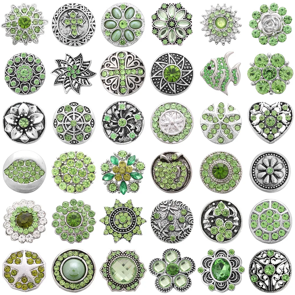 5 шт.лот, лидер продаж, ювелирные кнопки с зелеными хрустальными стразами, цветами, сердцем, металлические кнопки 18 мм, для браслетов сделай сам