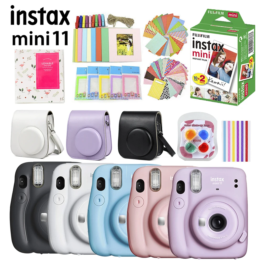 Розовыйсинийсерыйбелыйфиолетовый Fujifilm Instax Mini 11 камера + 20 листов Instax Mini белая пленка + чехол + альбом + набор аксессуаров