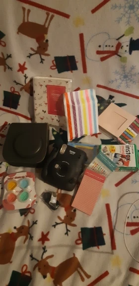Камеру получила через Почту России довольно быстро. Поскольку это подарок на Новый год, в работе пока не проверяли и даже не вскрывали. Набор большой: и разноцветные рамочки с прищепками, и чехол, и пленки, и много чего ещё. Упаковано надёжно, немного помялась коробочка с кассетой.