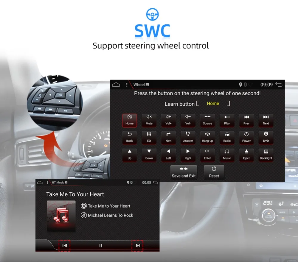 FeaturesCapacitive touch screen, Steering Wheel Control,Mic,Speakers,USB,SD