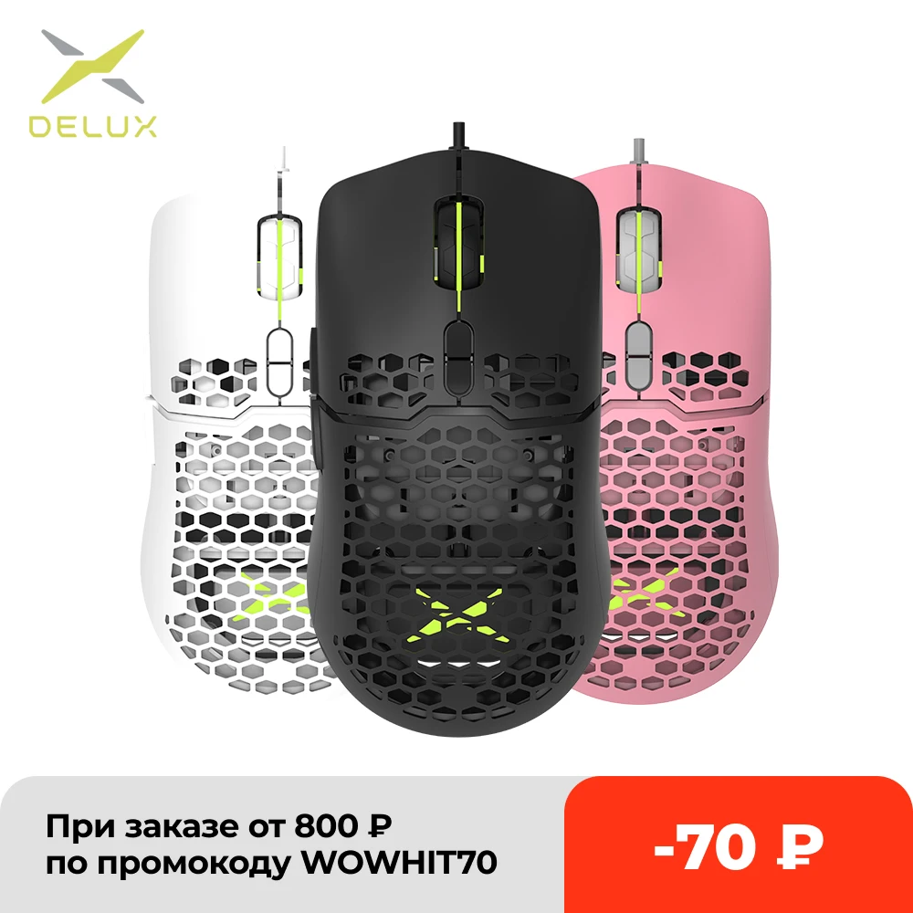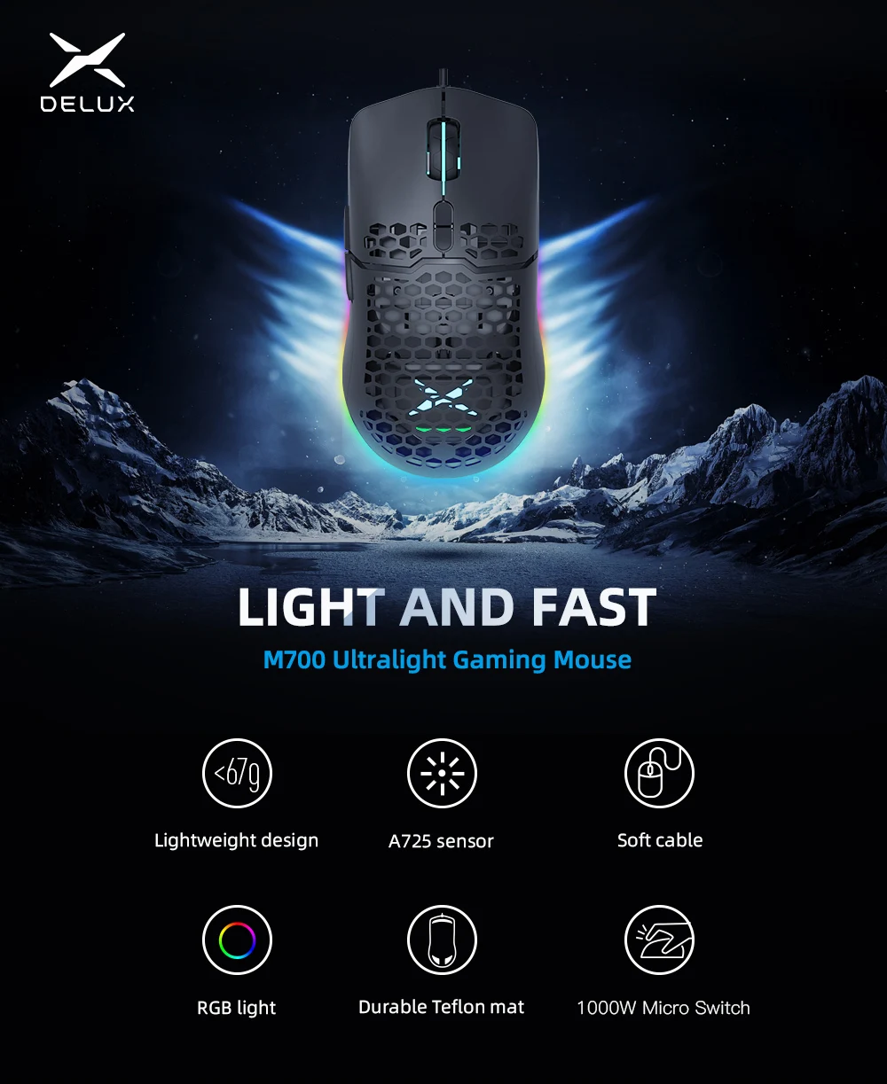 Delux M700A легкая игровая мышь RGB 67g 7200DPI 1000Hz эргономичные мыши с ультра плетеным кабелем для геймера компьютера