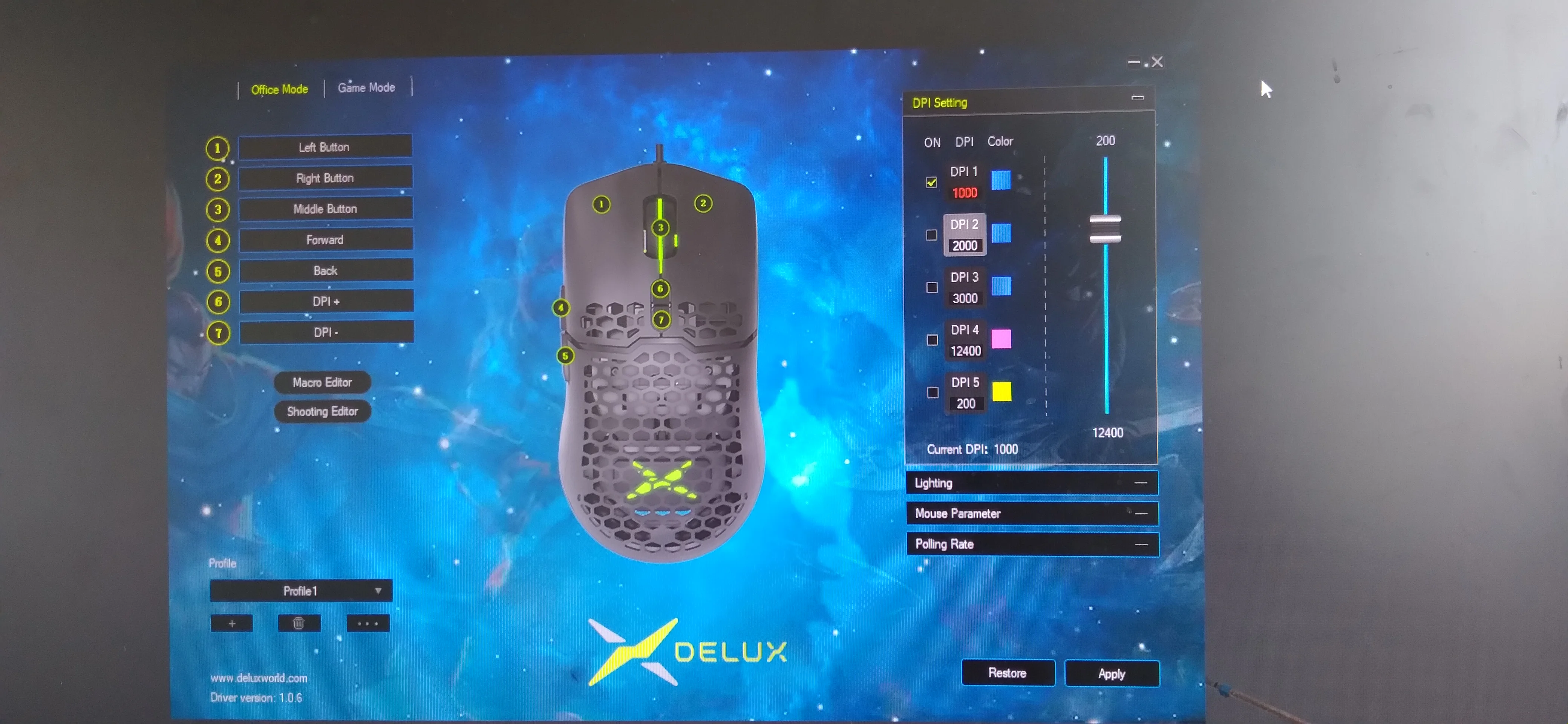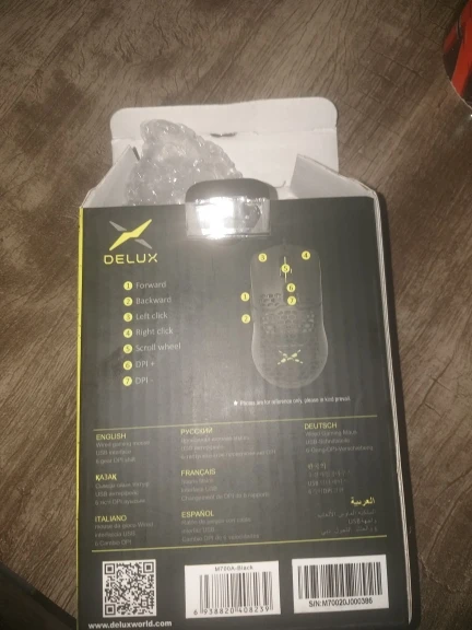 Хорошая мышь, видимо из новой ревизии, спинка не проминается, кабель из паракорда очень мягкий, очень легкая, подсветка равномерная. Настройки dpi присутствует в программе (delux m700a), не понравилось колесо и настройка подсветки. В целом очень даже хорошо за такую цену.