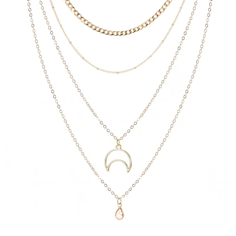 Богемное ожерелье с подвеской в виде капли воды с Луной, женское винтажное ожерелье с геометрическими бусинами, ожерелье, ювелирное изделие, YN1133