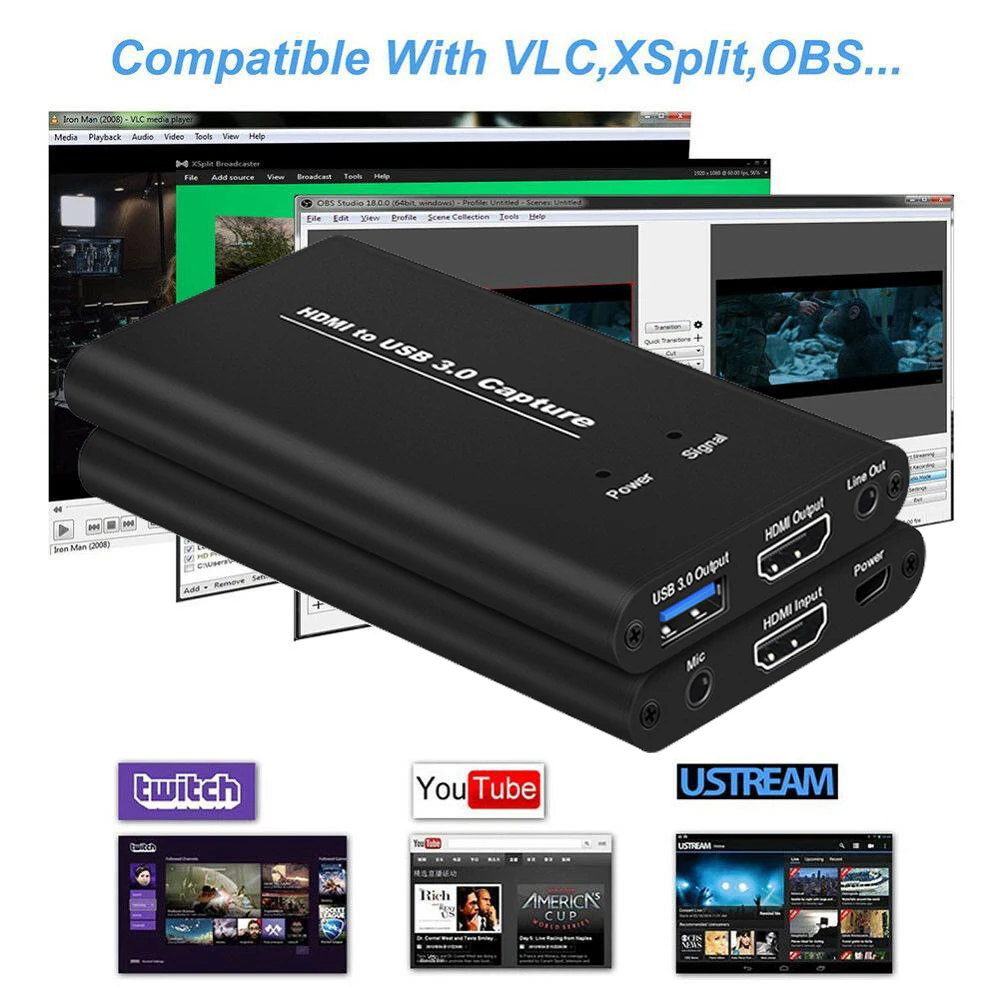 Карта видеозахвата USB3.0 HDMI 4K 60Hz карта захвата HDMI к USB видео рекордер коробка игра потоковая прямая трансляция с микрофоном
