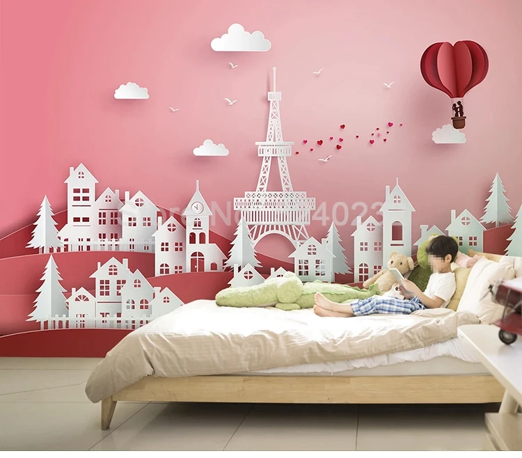 3D мультфильм Железный башня дом шар розовый девушки принцесса комната Детская комната Спальня украшение стены фото обои