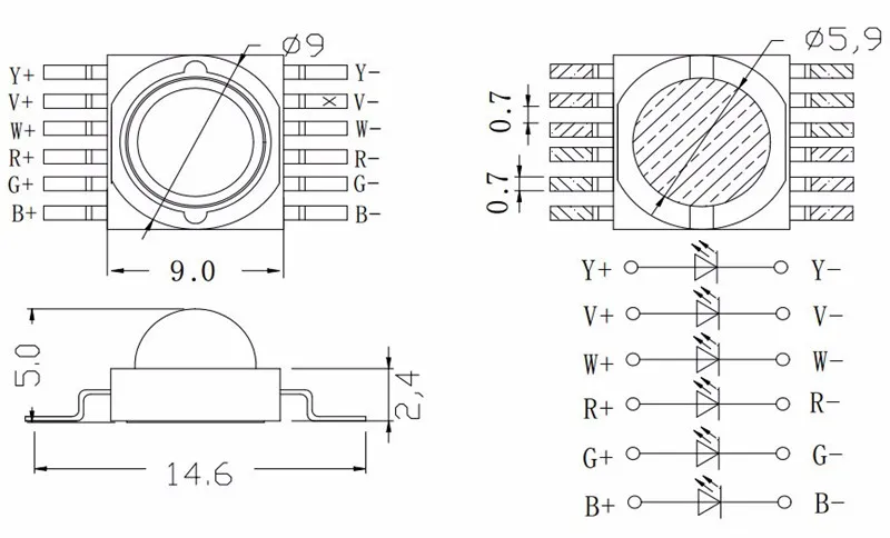 Я купил чип RGBW8PIN для ремонта LED PAR, который я купил на Aliexpress. Я думал, что просто заменю чип в той же ориентации, что и сбой чипа, но полярность была изменена, и он не горел. Он включился, когда я изменил его в противоположном направлении. Производительность была идеальной, и белый цвет был более прохладным. Большое спасибо!