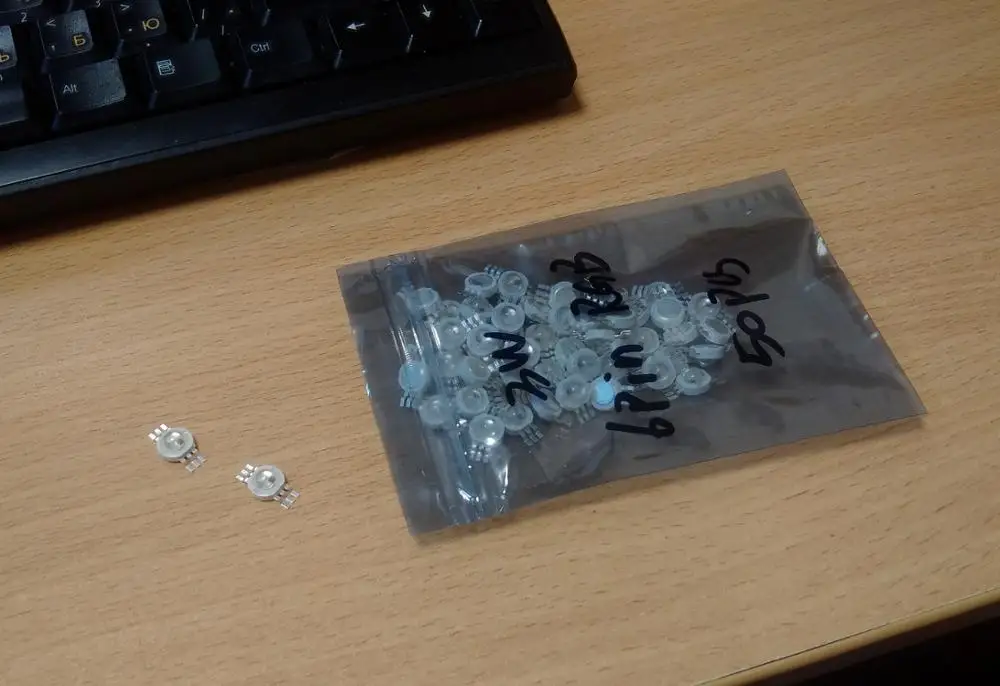 Светодиоды прибыли в мешок, где они потерлись друг от друга, вызывая тонкую пленку пыли на каждом. Основная проблема, которую я обнаружил, заключается в низком качестве чипов. Очень немногие огни 3 цвета работают должным образом во время тестирования. Много либо тускло светится, либо нет. Это тест низкого напряжения, поэтому его тестирование однородности диодов. Что действительно расстраивает, так это то, что некоторые диоды имеют мертвые точки на чипе, что означает, что свет не будет служить долго прямо с самого начала. Хорошие новости в том, что это настоящие светодиоды 3 Вт x 3, что означает, что общая мощность должна быть 9 Вт со всеми 3 ЧИПАМИ или 3 Вт одного цвета.