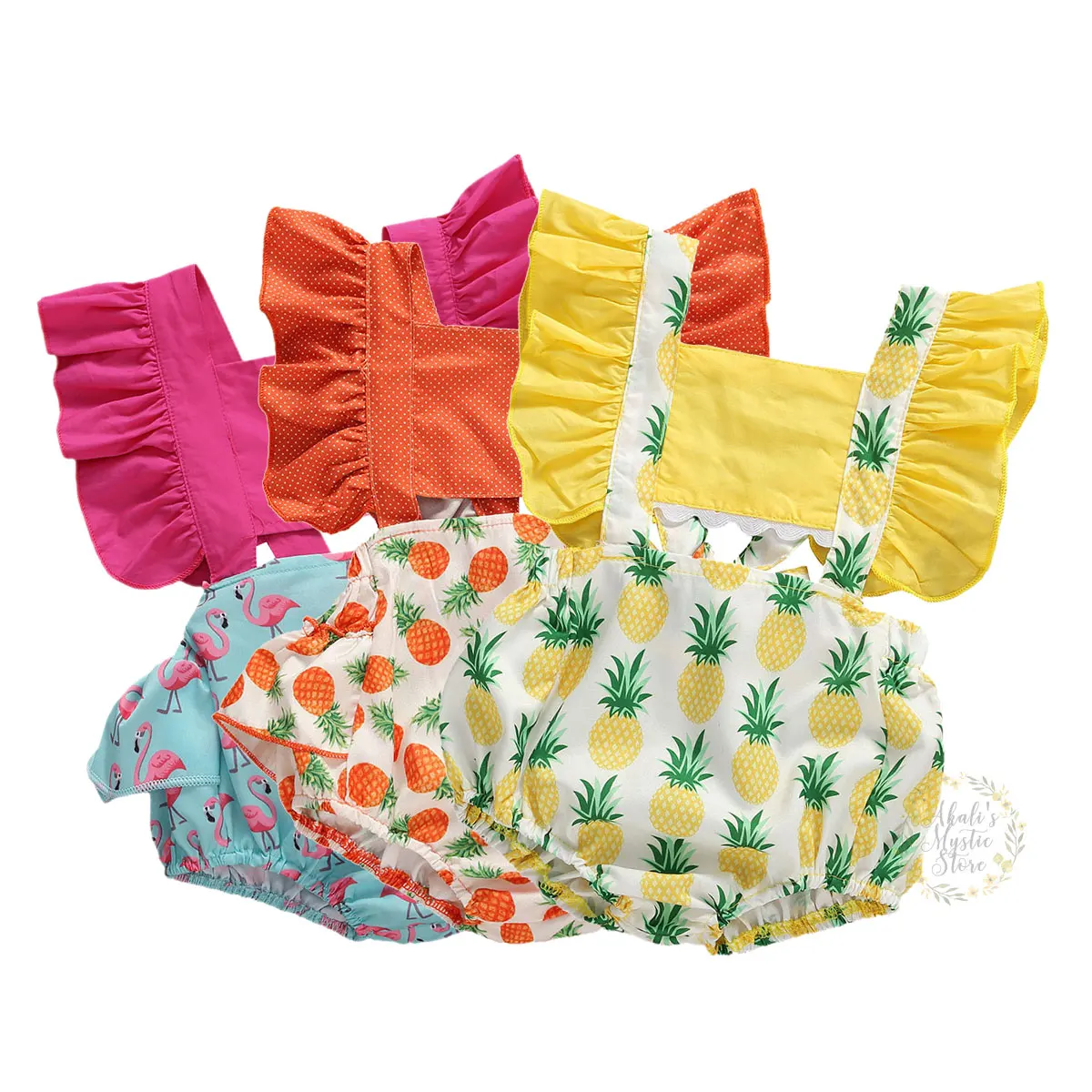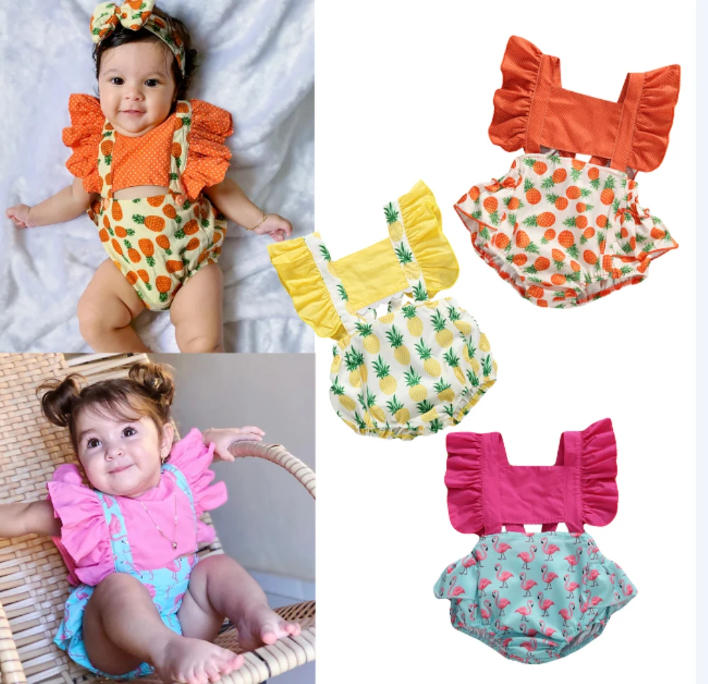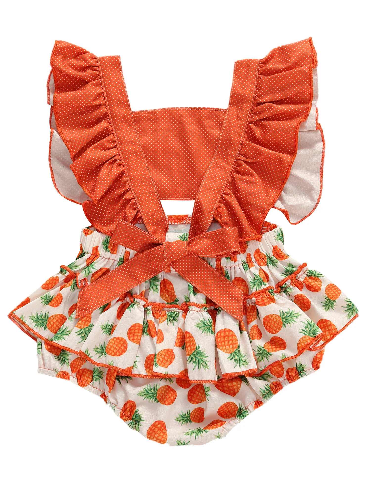 2020 Летние Детские Боди для девочек с фруктовым принтом; Модные детские комбинезоны с оборками и короткими рукавами для новорожденных; Детская одежда