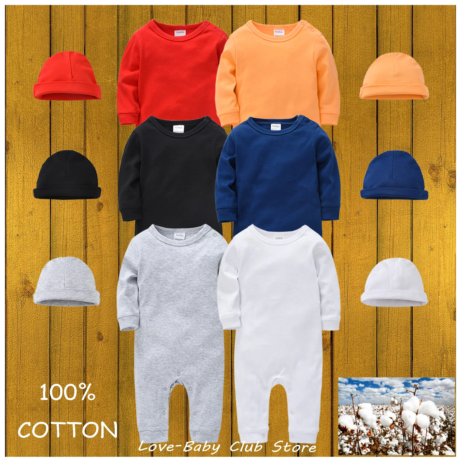 Комплект одежды для новорожденных, комбинезон для мальчиков и девочек + шапочка из 100% хлопка, трикотажная пижама для детей от 0 до 18 месяцев, одежда для малышей