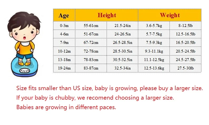 2. Пожалуйста, перед покупкой ознакомьтесь с фактическим ростом вашего ребенка и таблицей размеров.