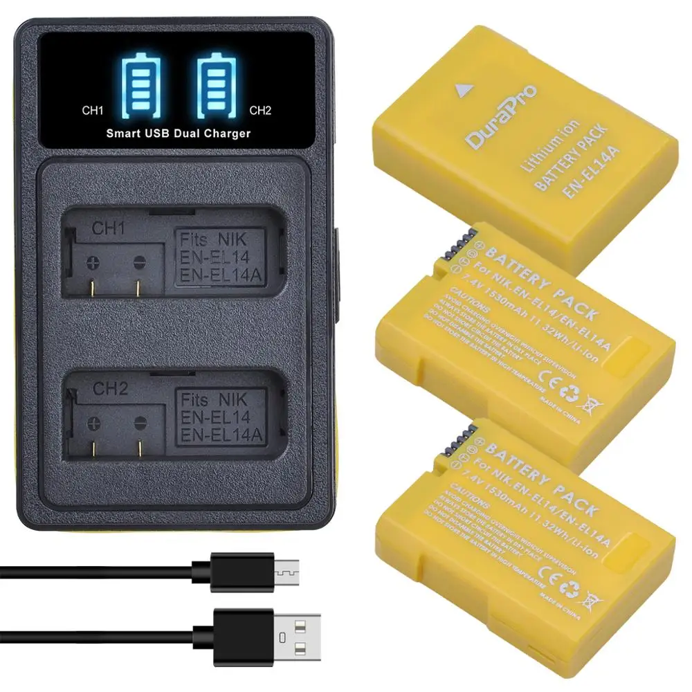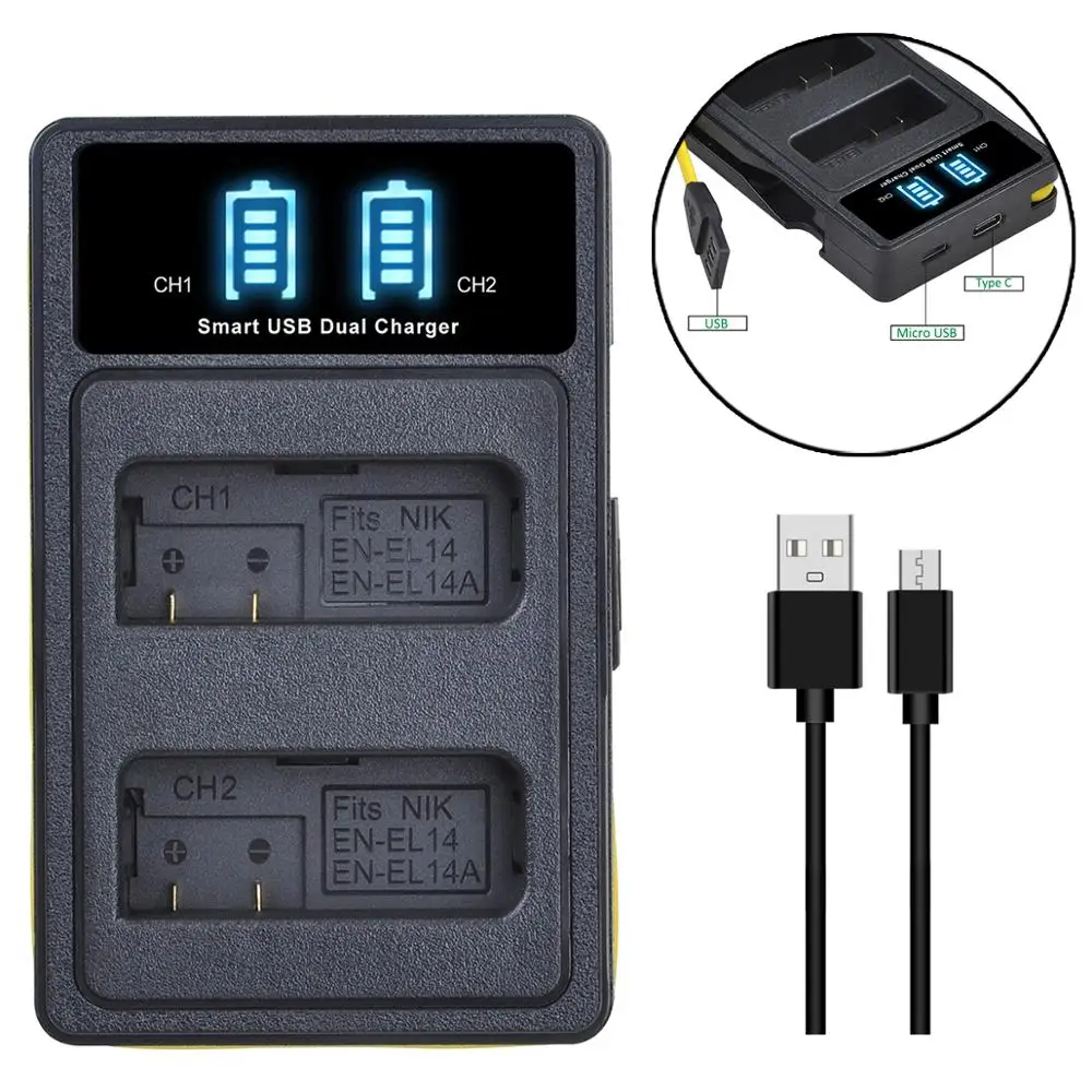DuraPro 1350mAH EN-EL14a EN-EL14 EL14 батарея + LED USB двойное зарядное устройство с портом Type C для Nikon D5600,D5500,D5300,D5200,D5100,D3200,D3300,P7800,P7700