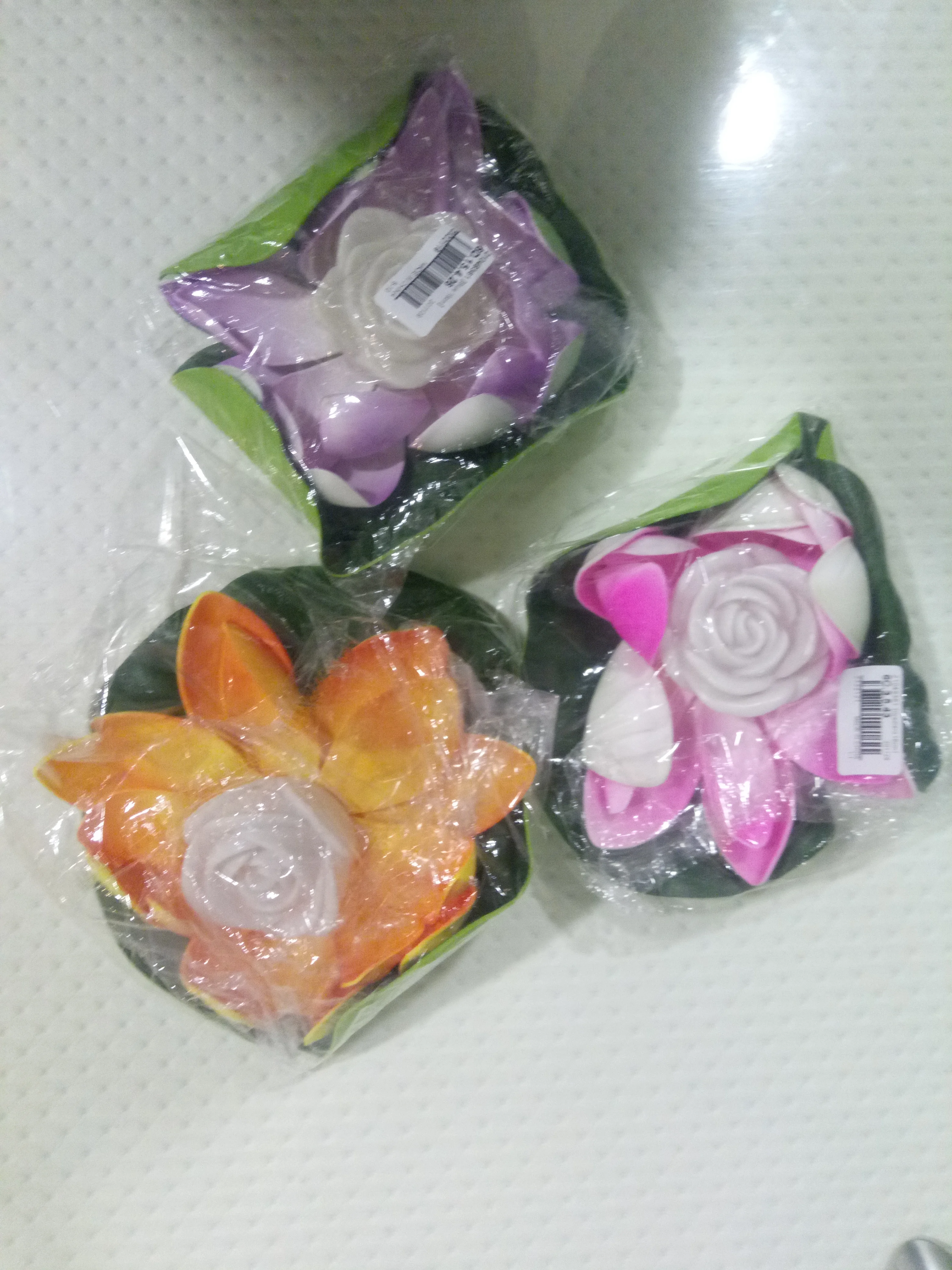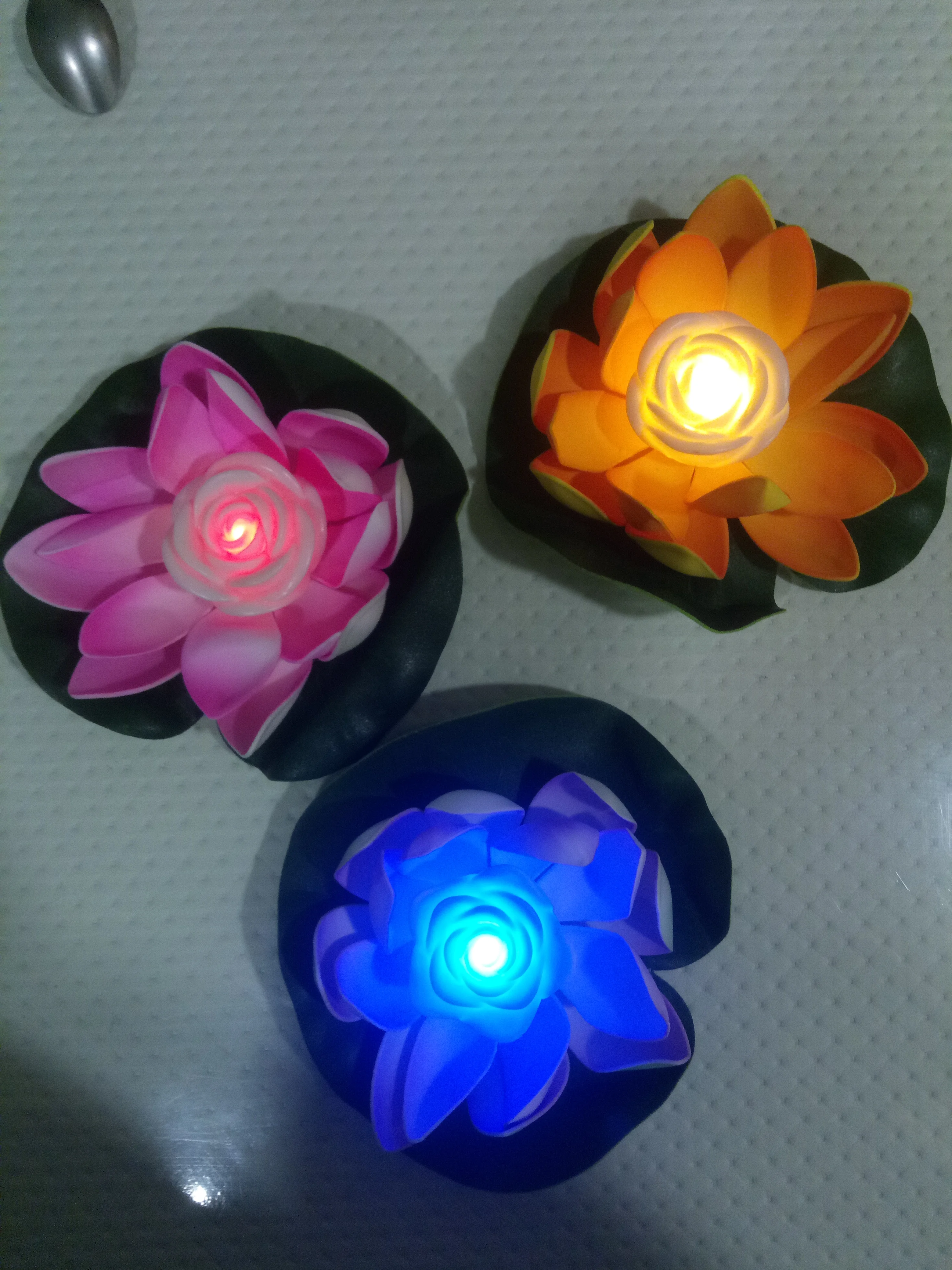 Лотосы отличные, красивые, но они работают не от солнечных батарей, как пишет продавец, а от 3-х батареек-таблеток. Эту информацию я знал из отзывов предыдущих покупателей, поэтому для меня это было не новшеством. Продавца я очень рекомендую: посылку отправил сразу авиасообщением, посылка отслеживалась на всём пути следования. Четвёрку поставил за неточное описание из-за солнечных батарей. К тому же ещё: два цветка светят своим цветом, а один переливается разными цветами. Я сэкономил на доставке: в пункт самовывоза, намного дешевле. А доставка каждого цветка отдельно.