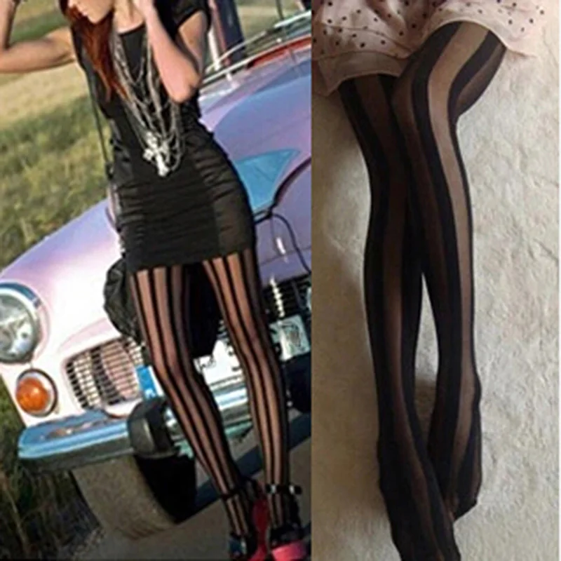 Пикантные черные вертикальные полосатые колготки, готические панковские полосатые колготки, женские соблазнительные прозрачные колготки с подтяжками, колготки