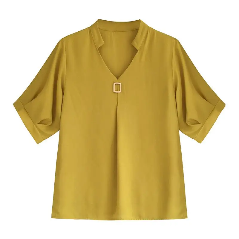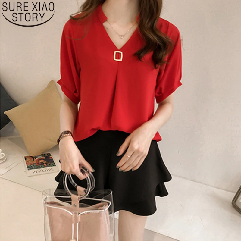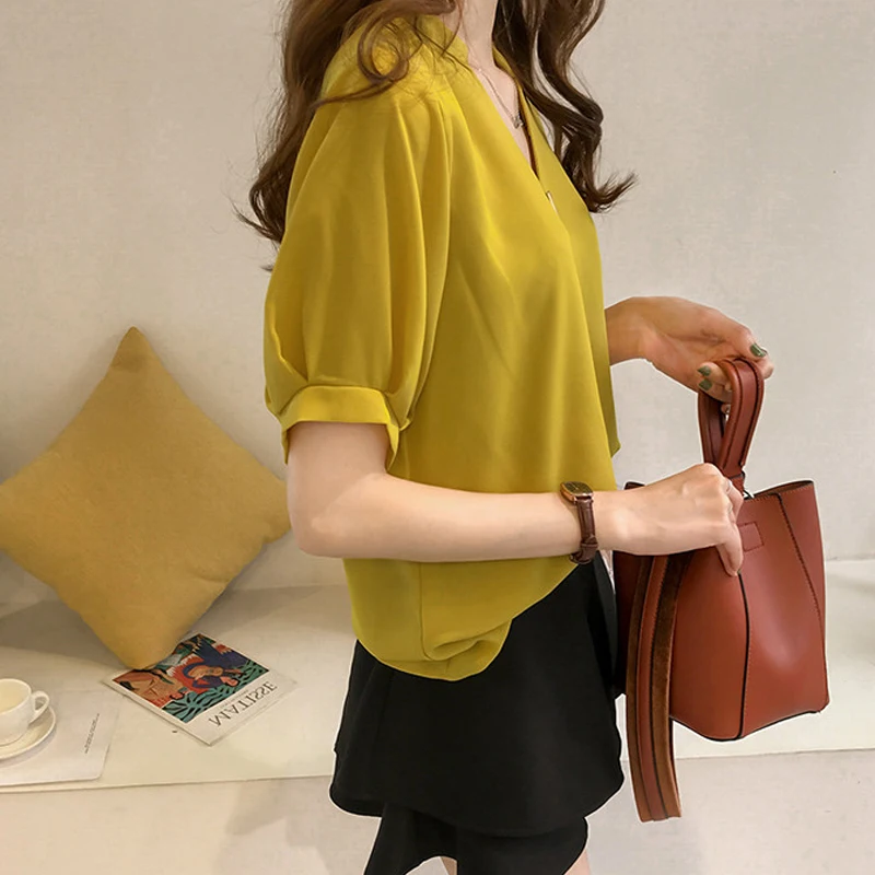 Женская шифоновая блузка с V-образным вырезом и коротким рукавом
