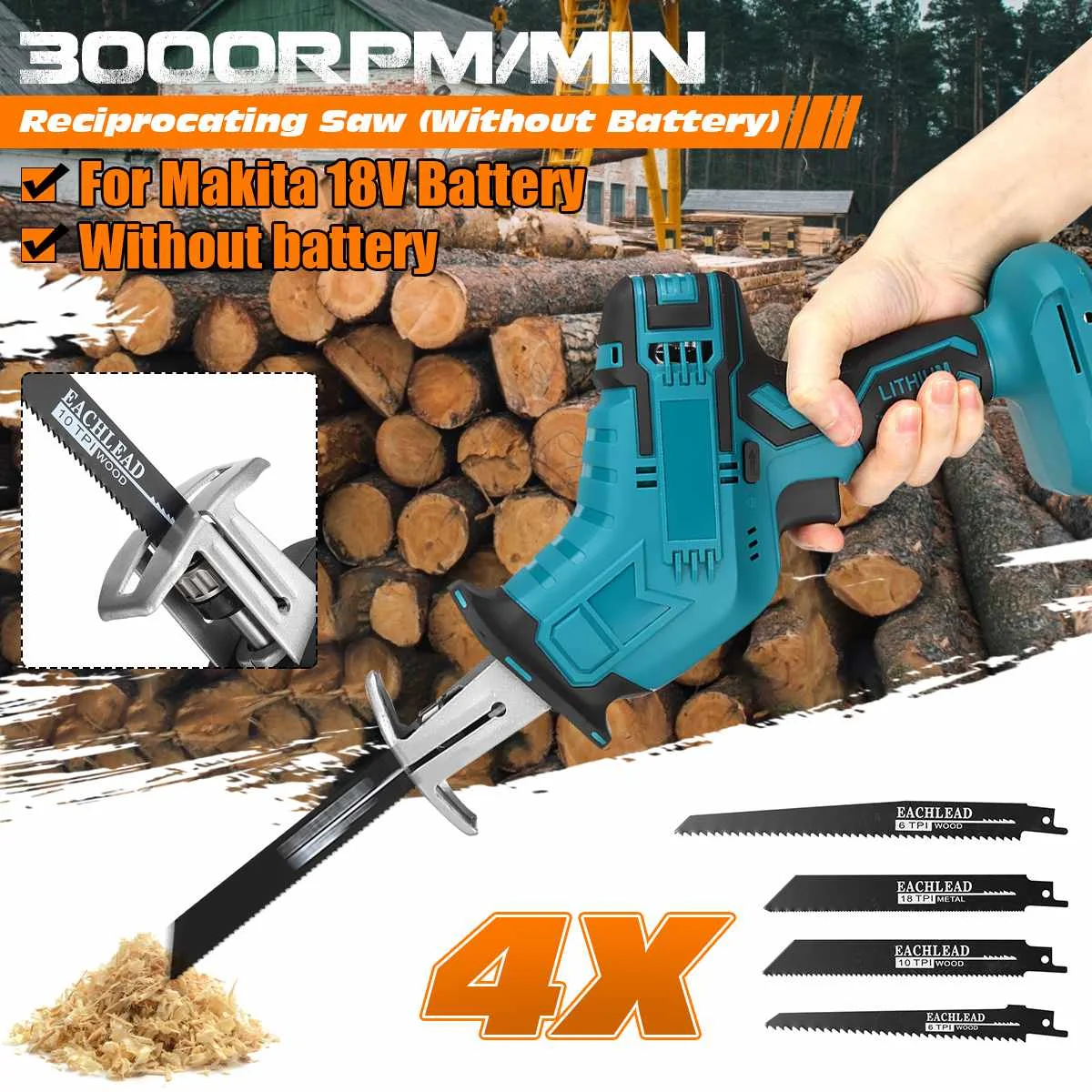 Сабельная пила, Беспроводная электрическая пила для резки дерева, металла, пластика, электропила 4000 об.мин., аккумулятор Makita 18 в