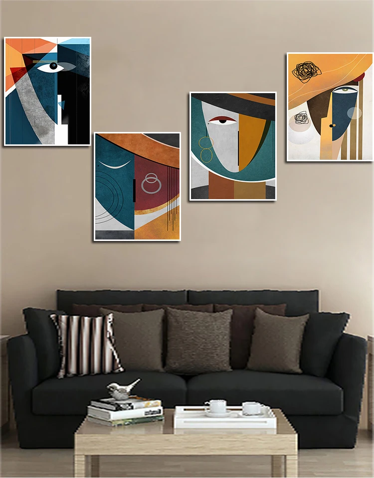 Современная Скандинавская абстрактная Геометрическая фигурка, Настенная картина с изображением лица, холст, живопись, плакаты, принты для гостиной, украшение для дома