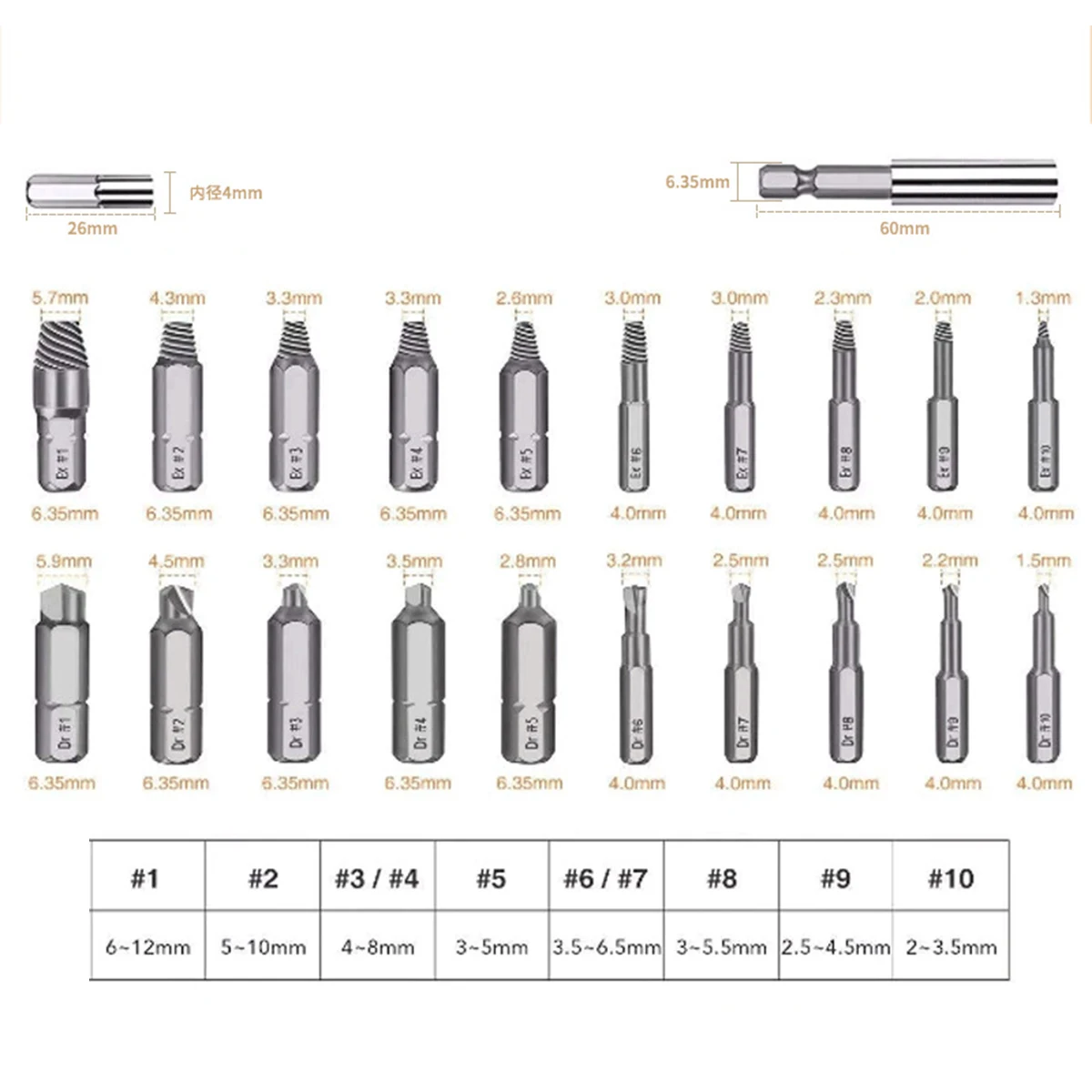 Прочный антикоррозийный винт из быстрорежущей стали, экстрактор, инструмент для удаления поврежденных винтов, легкое сверление, болты, Безголовый винт, экстрактор, 22 шт.компл.