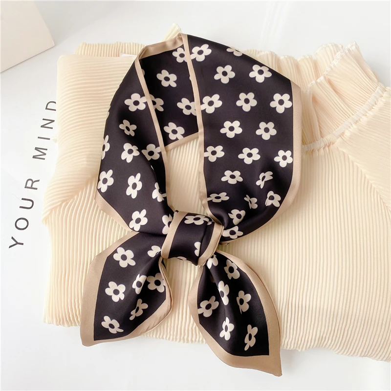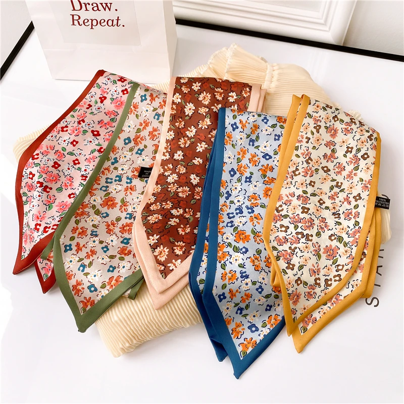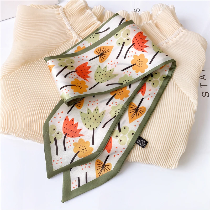 Новинка 2021, Шелковый облегающий шарф для женщин, повязка на голову, шарф с цветочными узорами, женская сумка, шарфы, воротник, повязка на голову