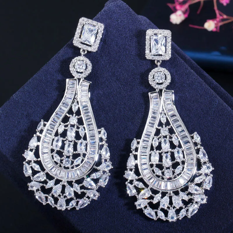 Серьги-подвески Pera E578 женские, элегантные длинные серьги-подвески со сверкающими белыми кристаллами с фианитами, Ювелирное Украшение для вечеринок