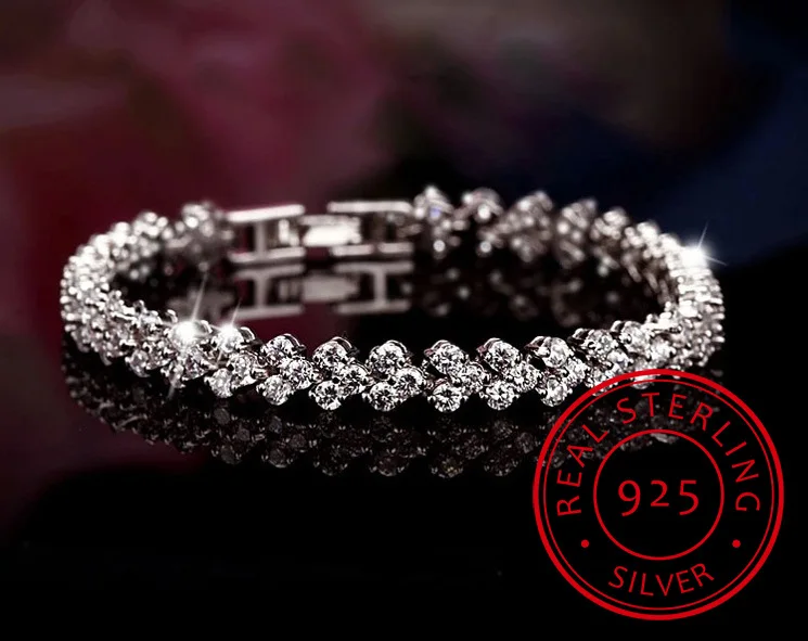 Женский браслет с сердцем, из стерлингового серебра 925 пробы, с кристаллами циркония, серебряный браслет для тенниса