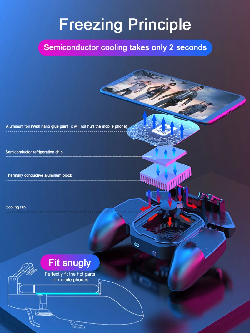 Характеристики: кулер для телефона, чувствительный, 6 пальцев, простой в использовании, эргономичный дизайн