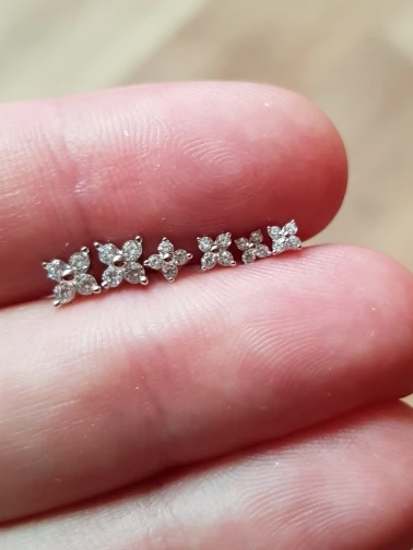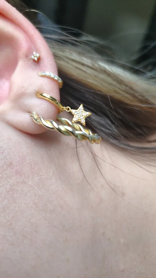 Я очень доволен этими серьгами, они абсолютно великолепны и выглядят простыми и чистыми в ушах. Они меньше, чем кажется!