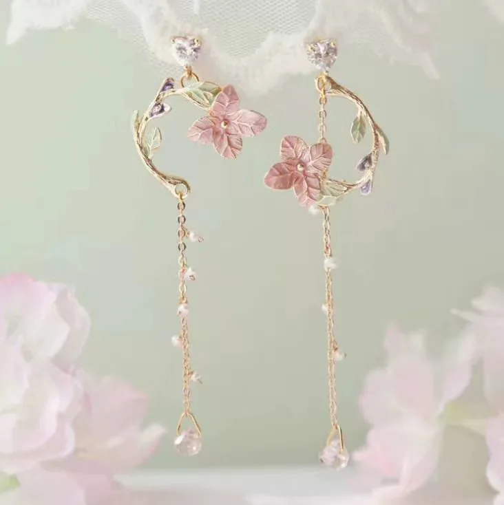 Серьги для девочек, французские нежные Длинные асимметричные серьги с жемчугом, сказочные серьги