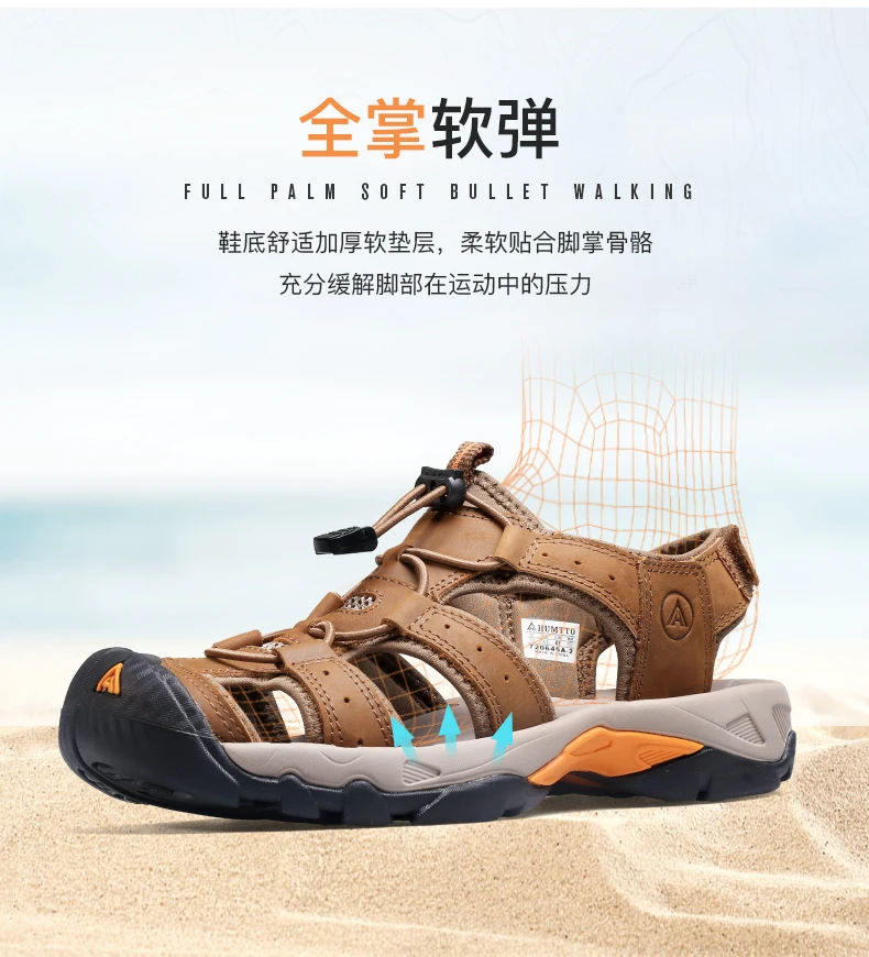 Мужские пляжные сандалии Humtto, Летние удобные сандалии с защитой от столкновений, для пеших прогулок, рыбалки, 2021