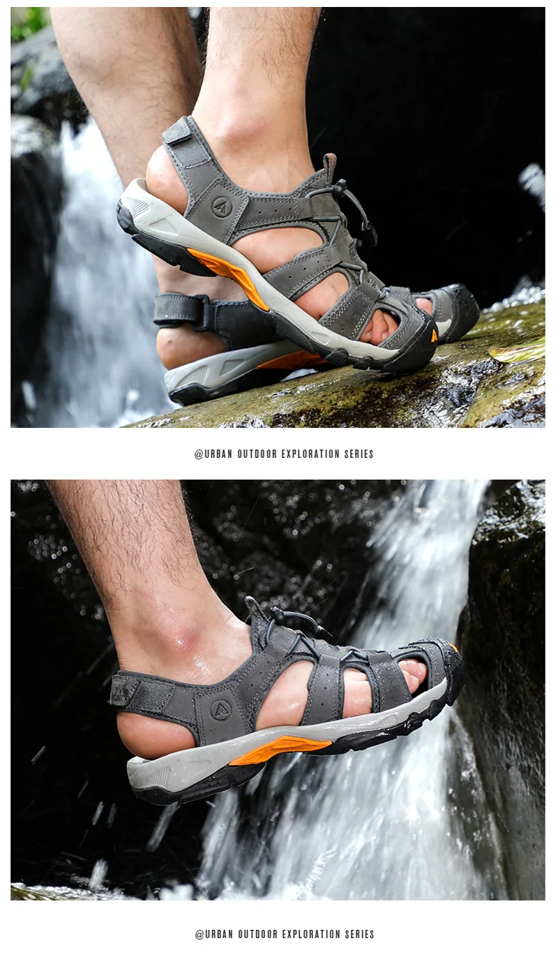 Мужские дышащие кожаные сандалии HUMTTO, летняя пляжная обувь для п...
