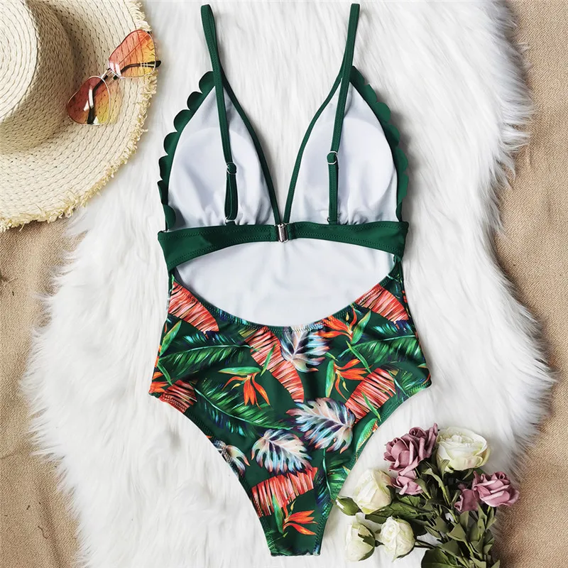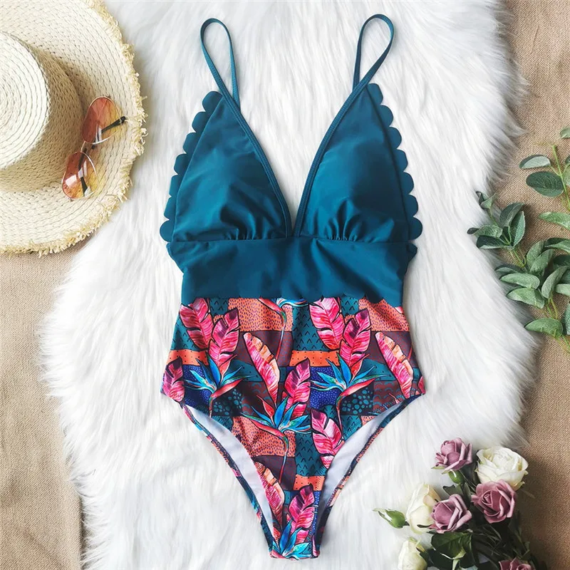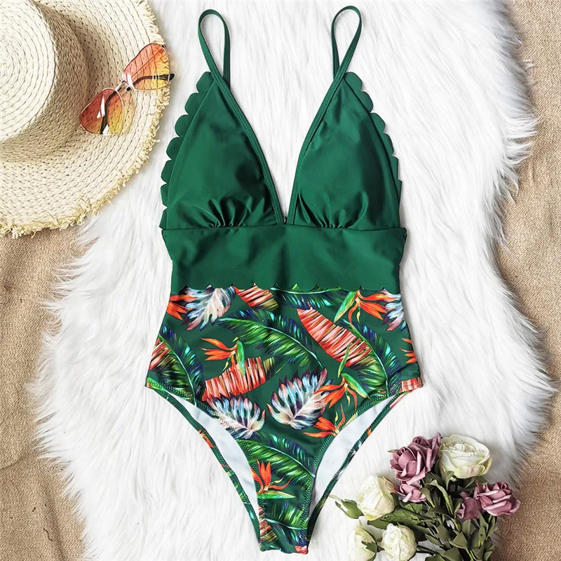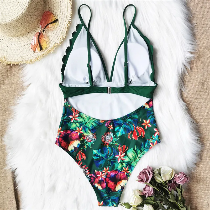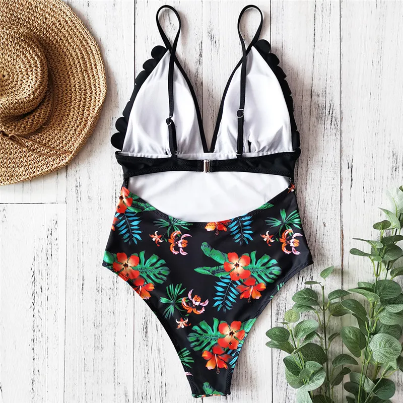 Пикантное боди с цветочным принтом Peachtan, купальник-монокини с V-образным вырезом, слитный купальник с оборками, женский купальник для экстремальной съемки, 2020