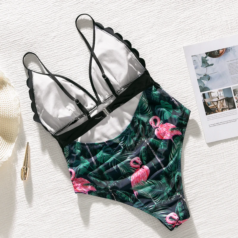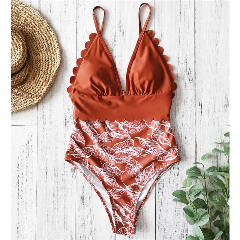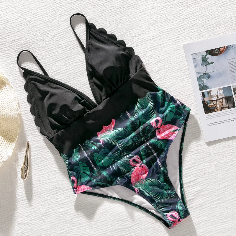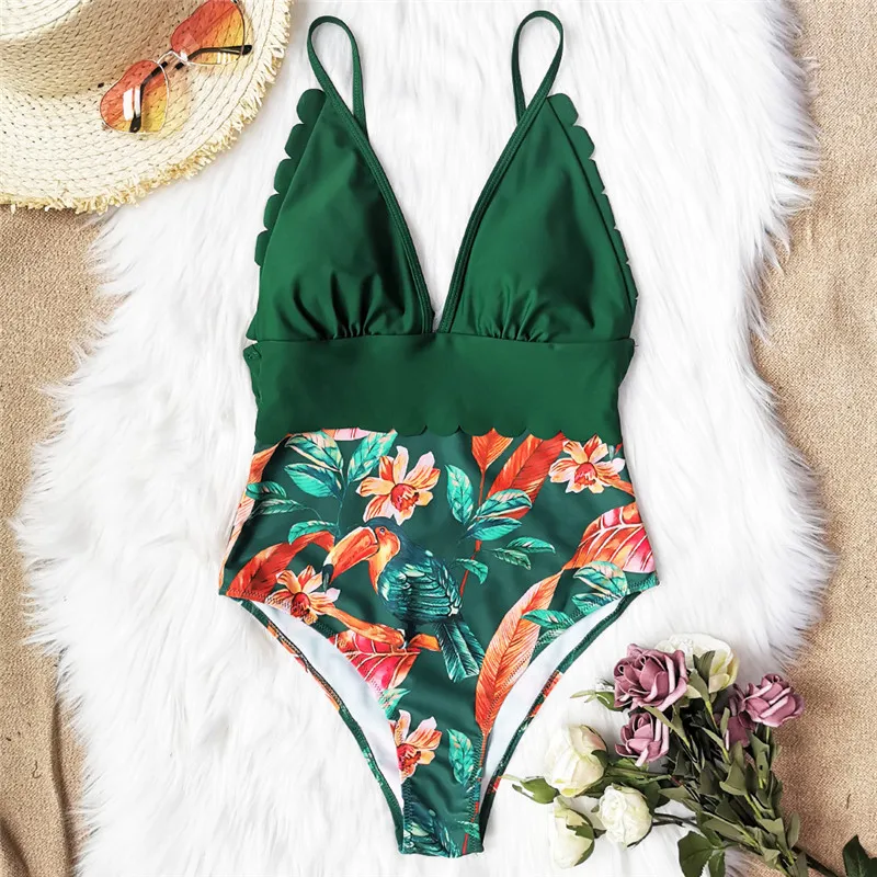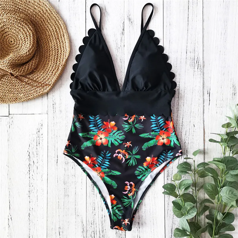 Пикантное боди с цветочным принтом Peachtan, купальник-монокини с V-образным вырезом, слитный купальник с оборками, женский купальник для экстремальной съемки, 2020